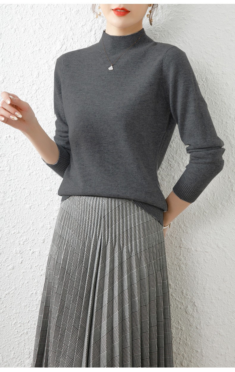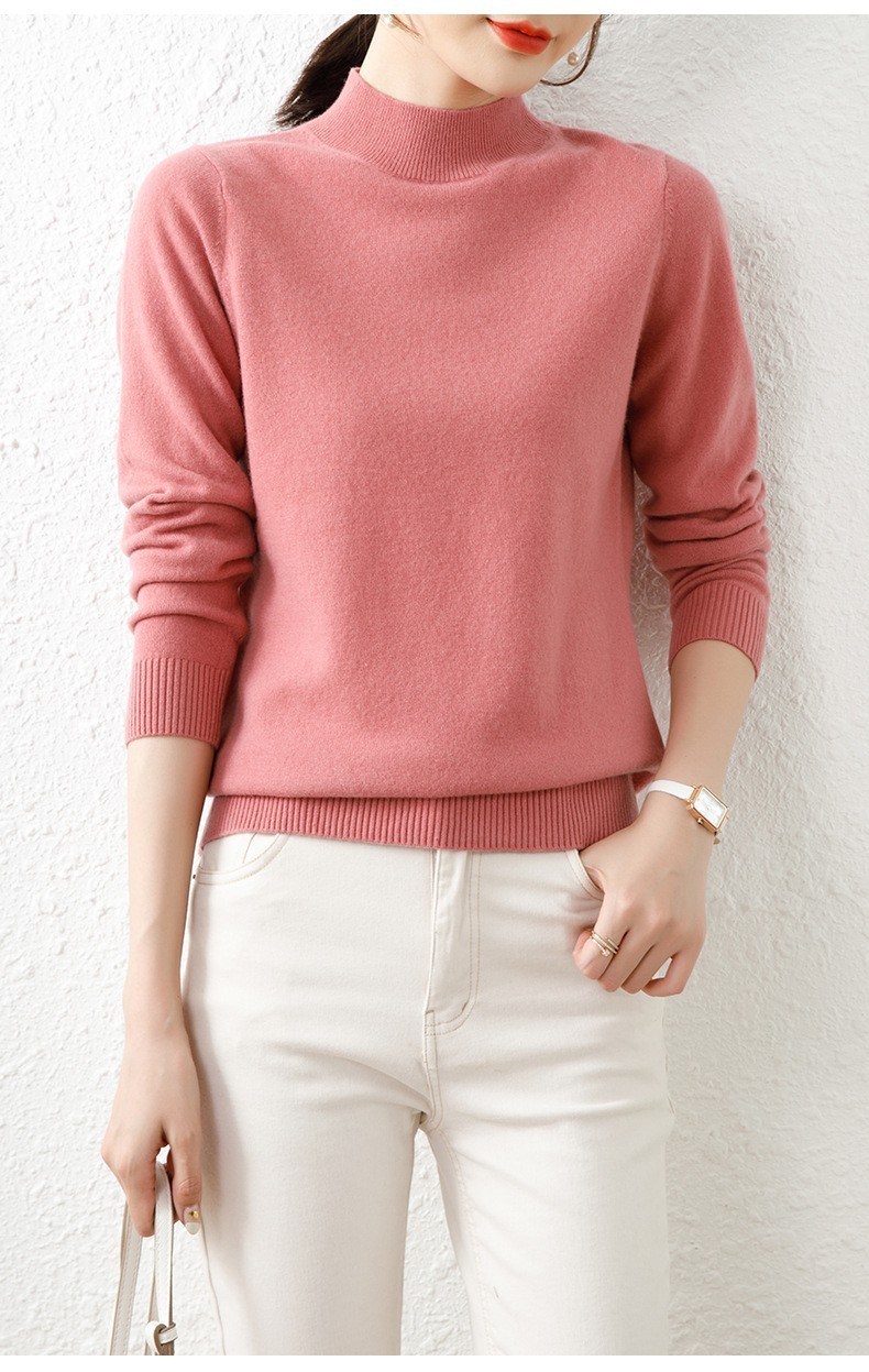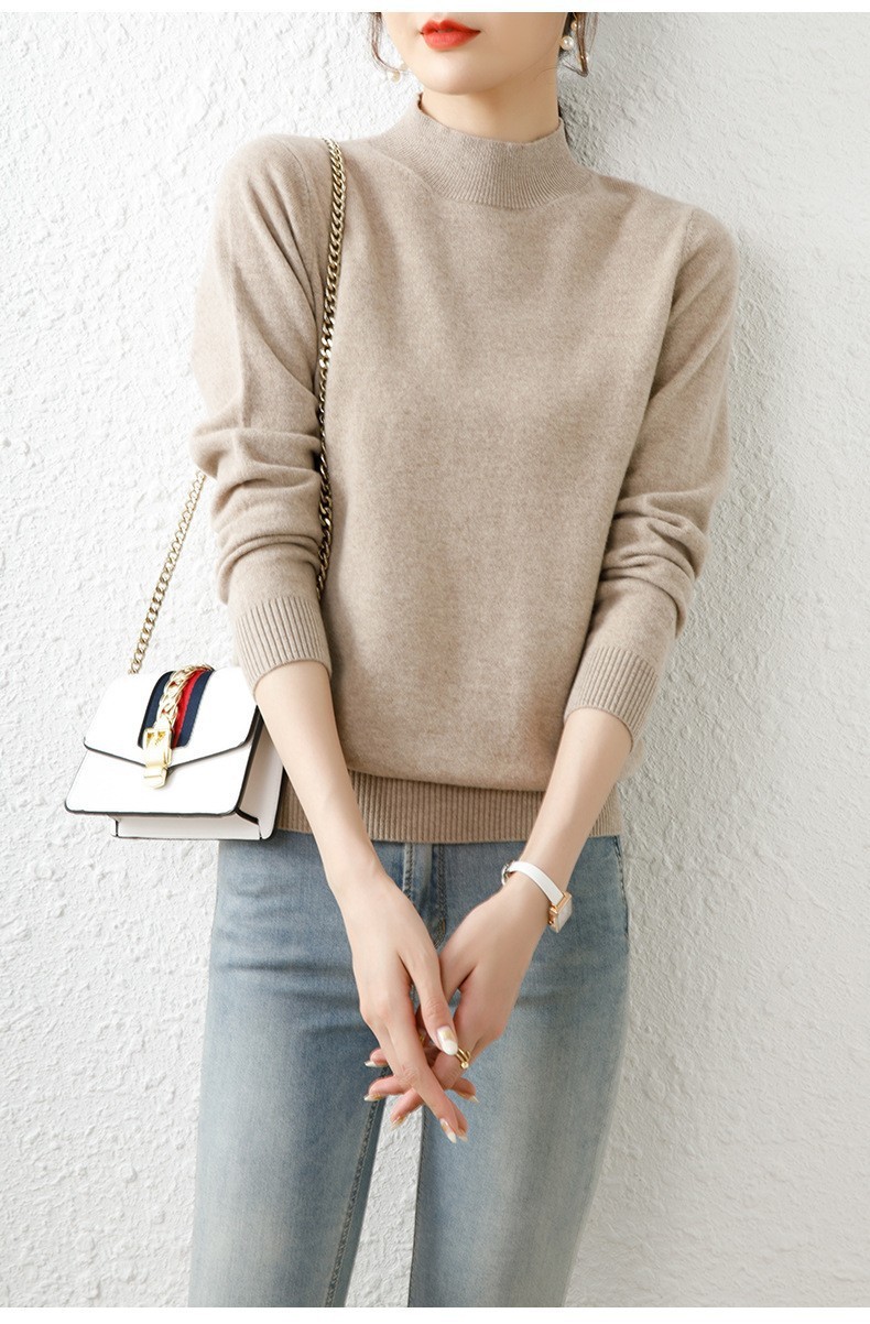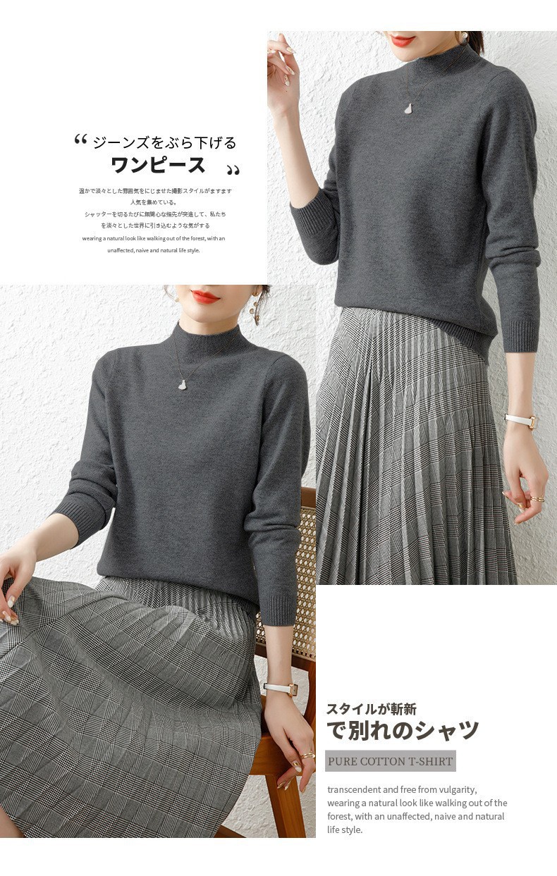 韓国ファッションレディース ベーシックニット 気質ハーフハイネックボトムシャツ女性インナースリムニット長袖春秋ジャンパー ニット