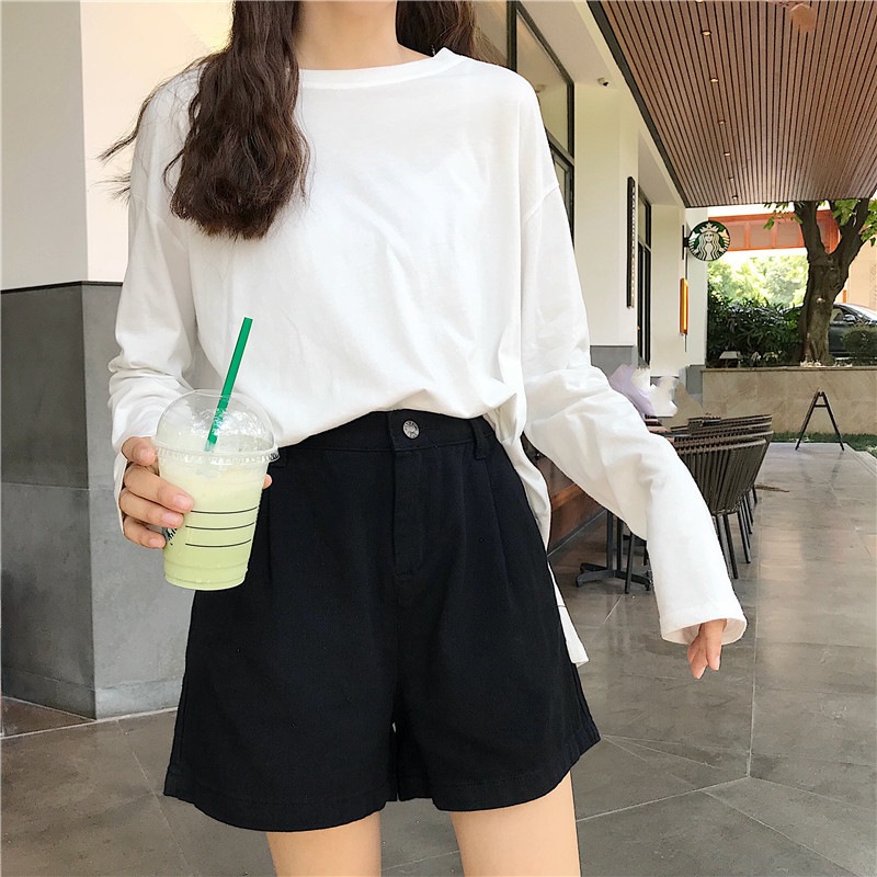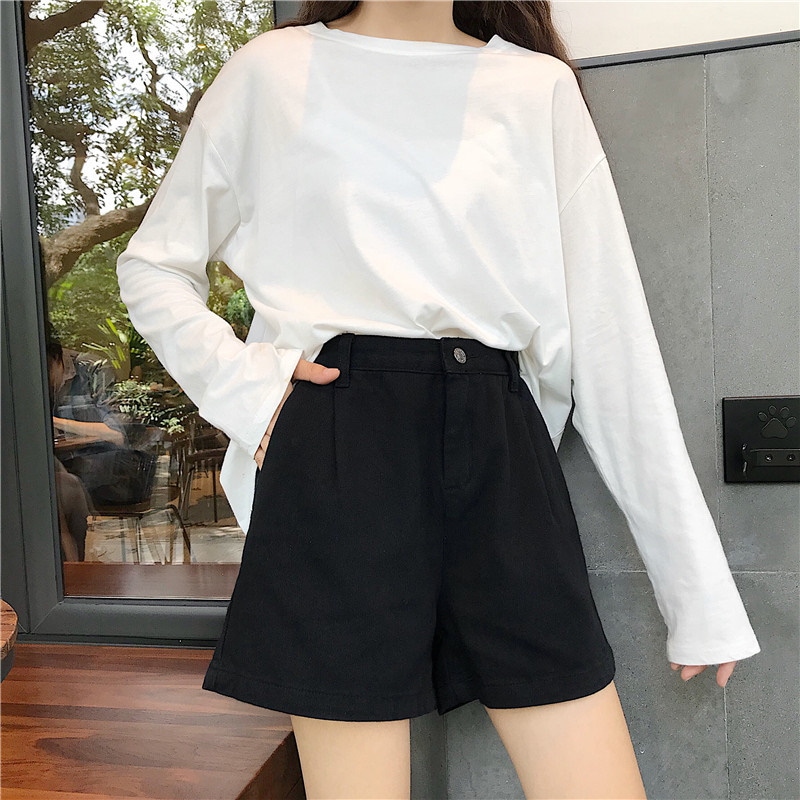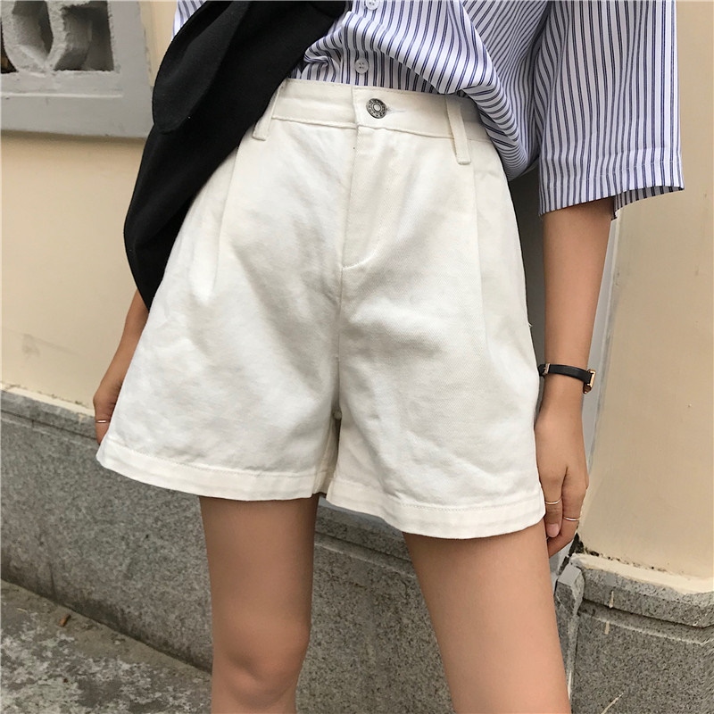 ショートパンツ タック入り ツイル オルチャン キュロットパンツ レディース 綿 ツイ デニム ジーンズ