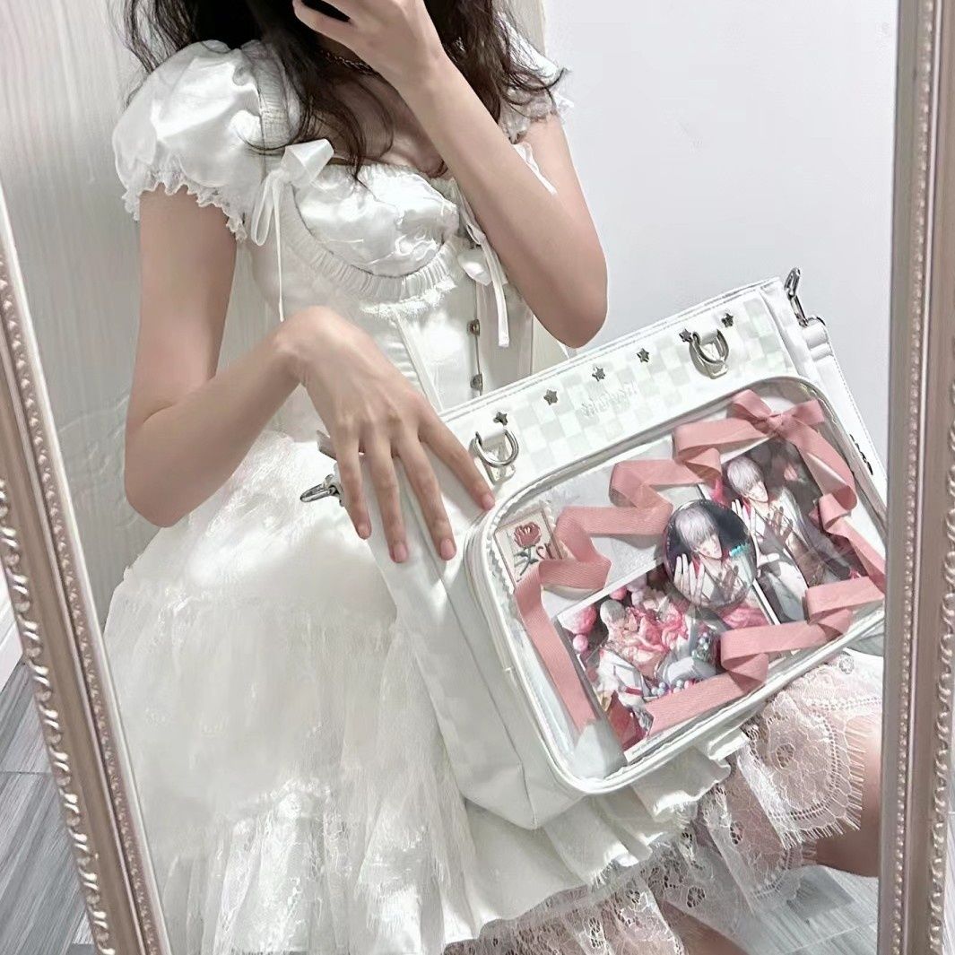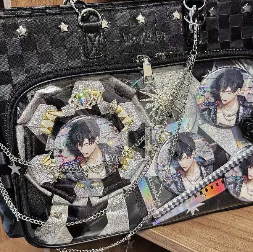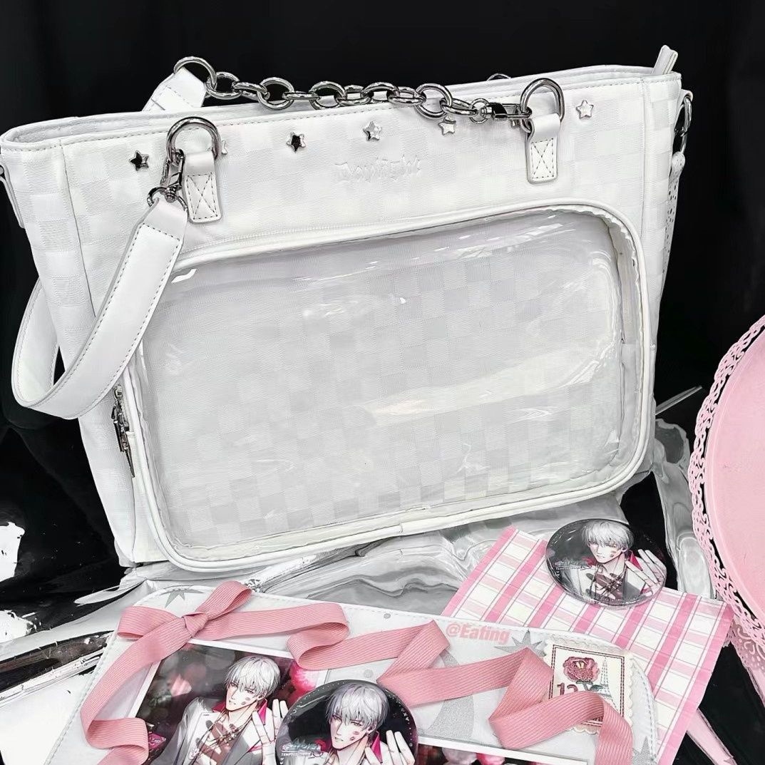 痛バッグ 痛バ シンプル トートバッグ 痛バック 見せバッグ 透明 おたく オタクバッグ ブラックデイバック 痛バ 痛いバッグ 缶バッジ 大容量 通学 遠足 イベント