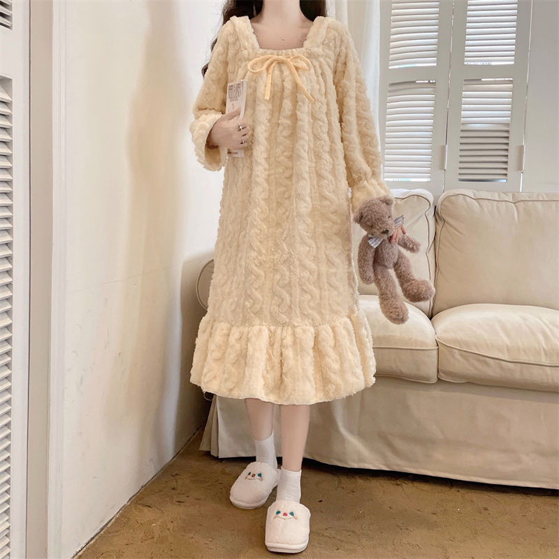 ひんやりボトムス ネグリジェ 裏起毛厚手 コーラルフリース パジャマ レディース ウォーム ホームウェア 補正下着 パジャマ