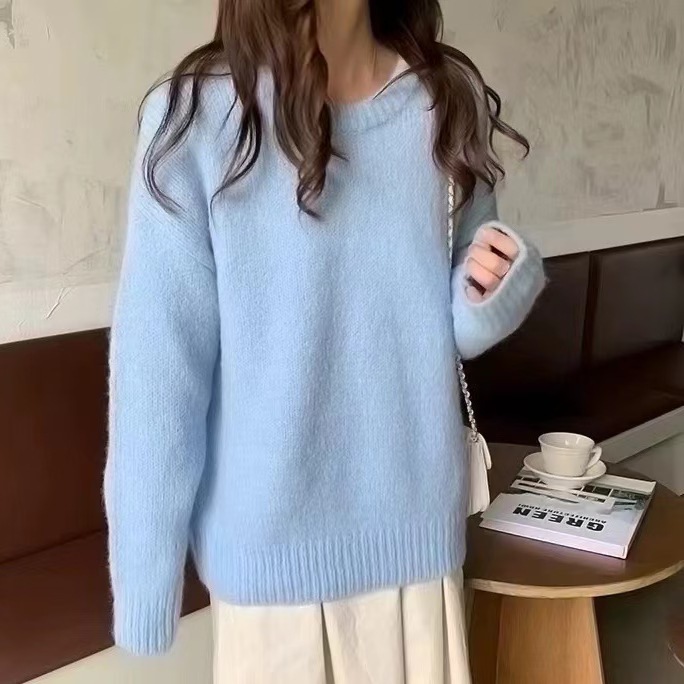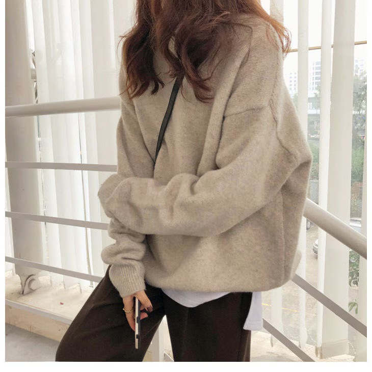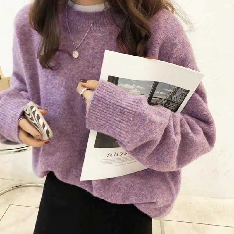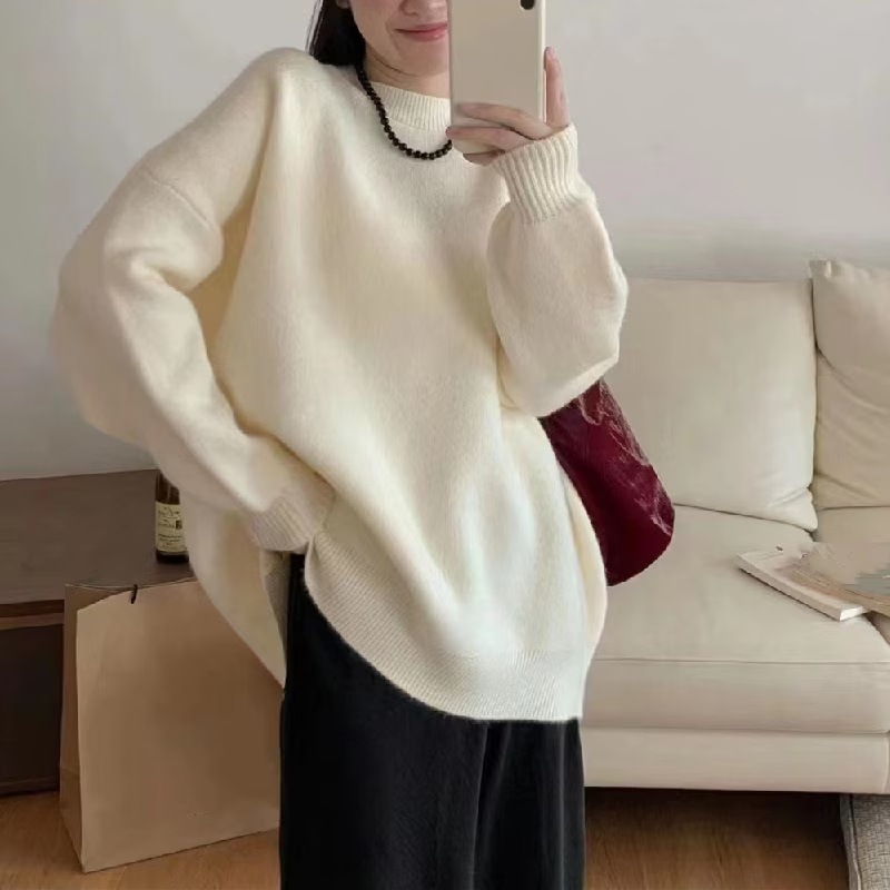 韓国人気商品 厚手 ニット服 セーター 女性 冬アウター ルーズ セーター 大サイズ カシミヤタッチ 無地 厚手シャツ 秋冬 韓国ファッション レディース ファッション