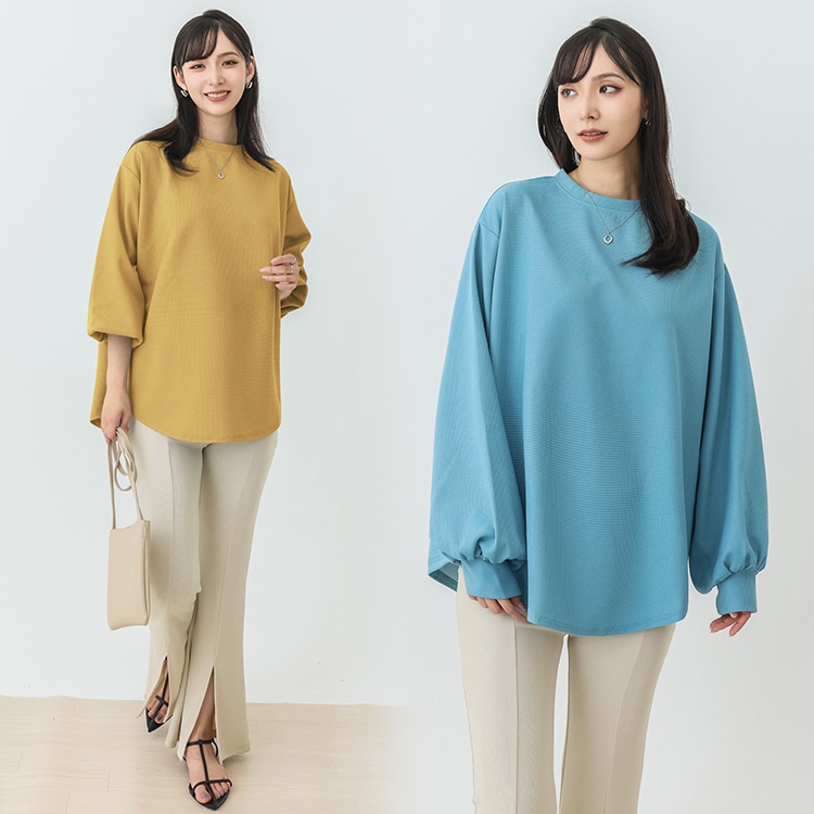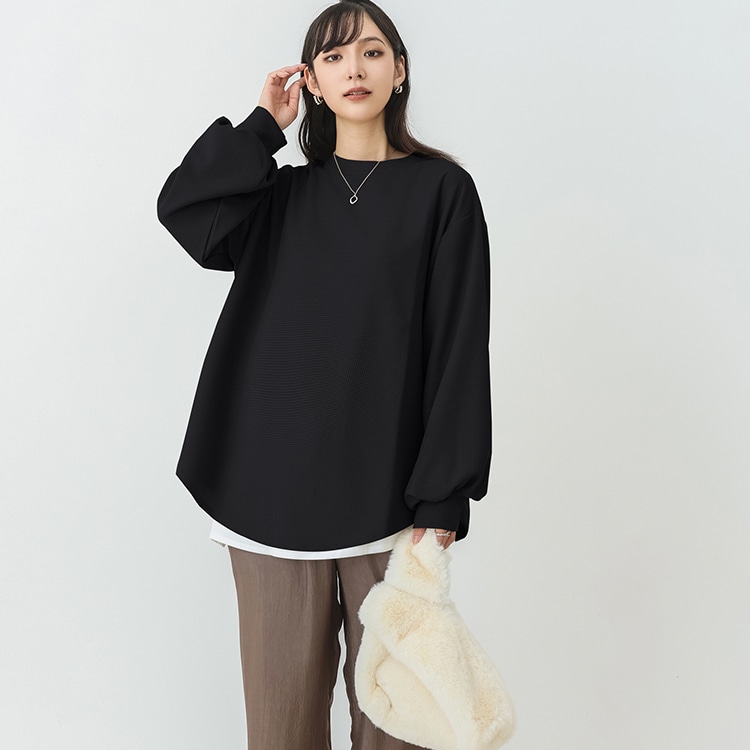 春新作入荷 スウェット レディース ワッフル生地 長袖 ボリューム トップス トレーナー おしゃれ 丸首 春秋 薄手 スウェット無地 トップス ロンT 体型カバー シンプル リラックス ゆったり