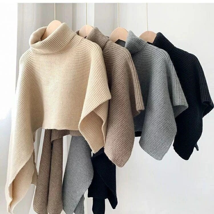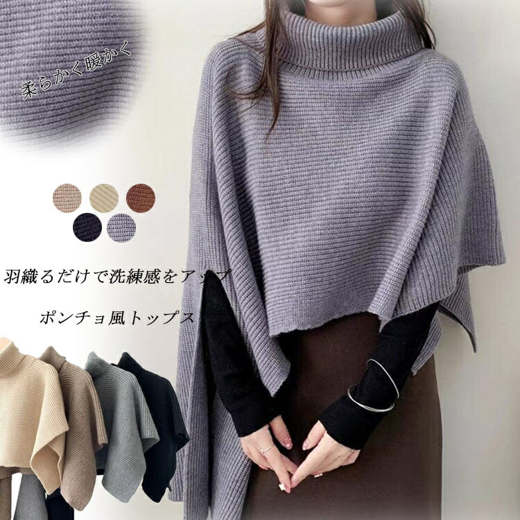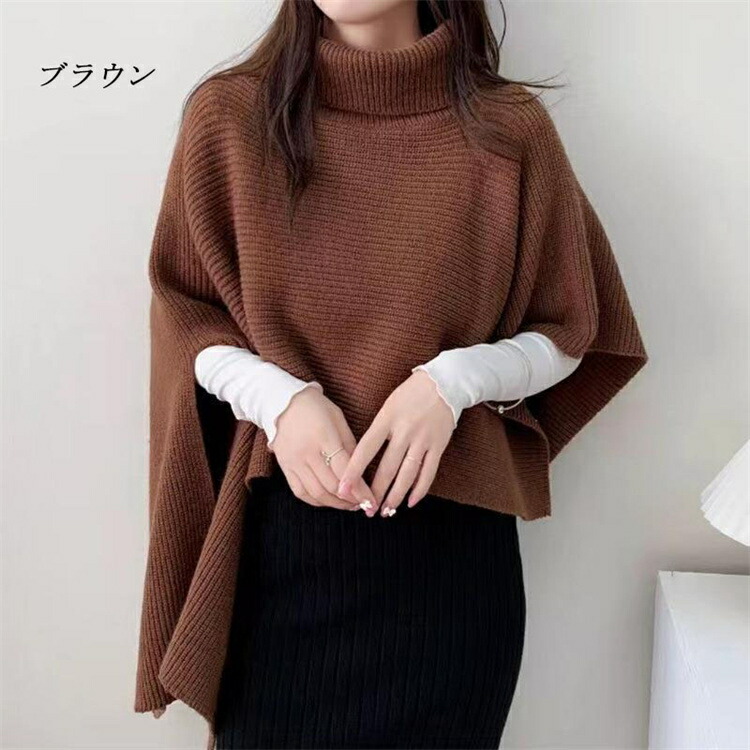 タートルネック ケープ ニット 秋冬 ニットトップス ハイネック オフタートルベスト ポンチョ ニット アシンメトリー ニットケープ レディース ニットベスト ローゲージ ジレ マント ショール チ