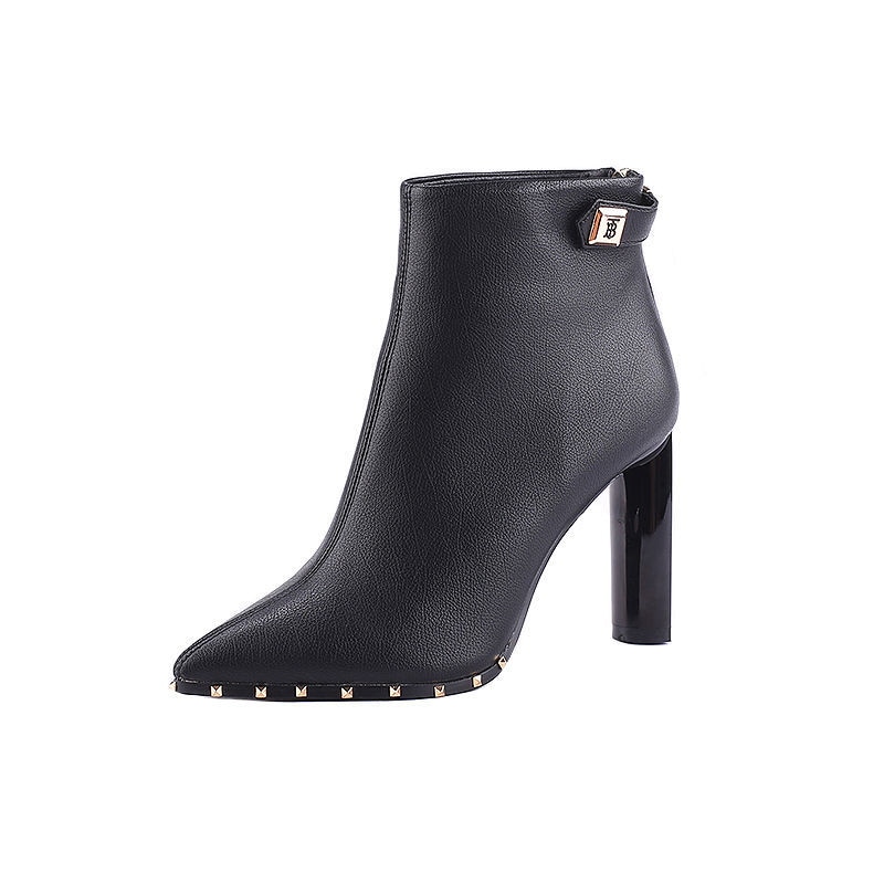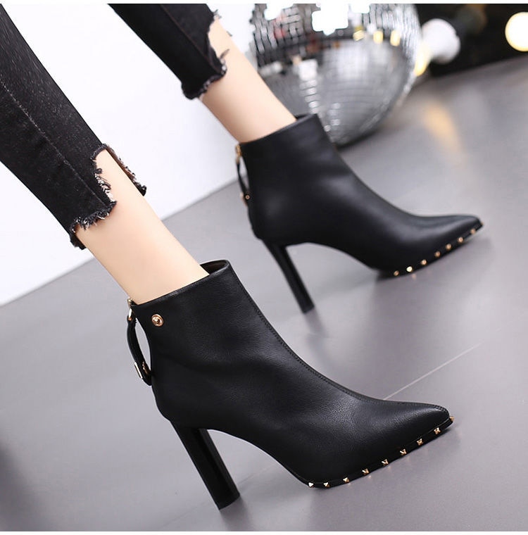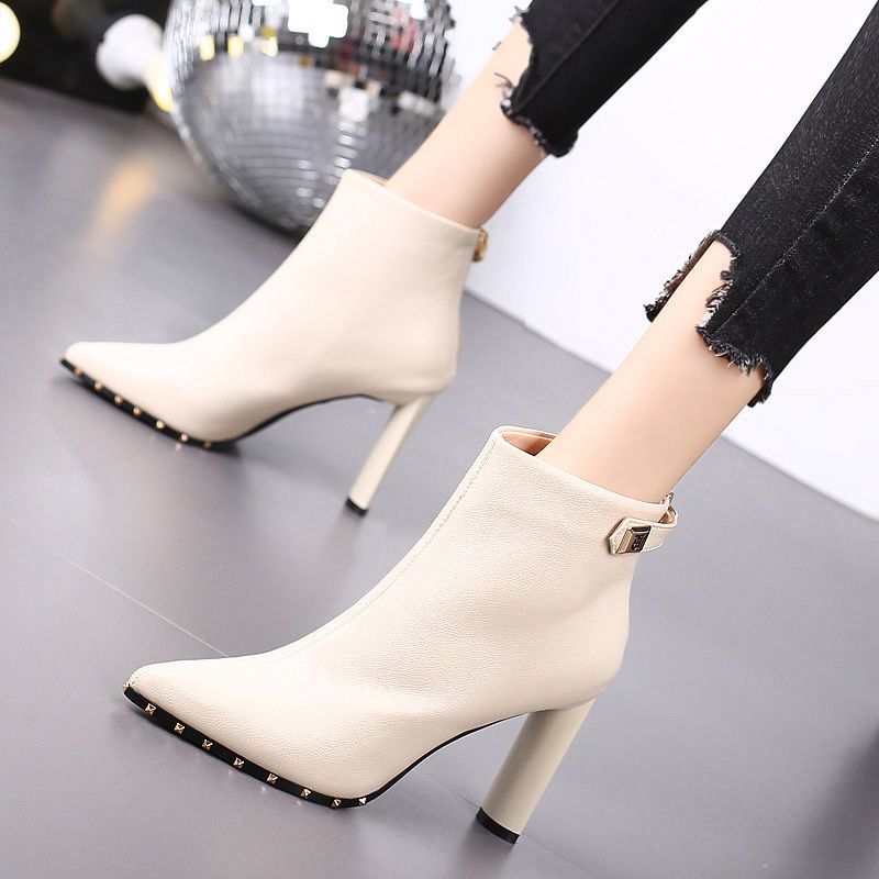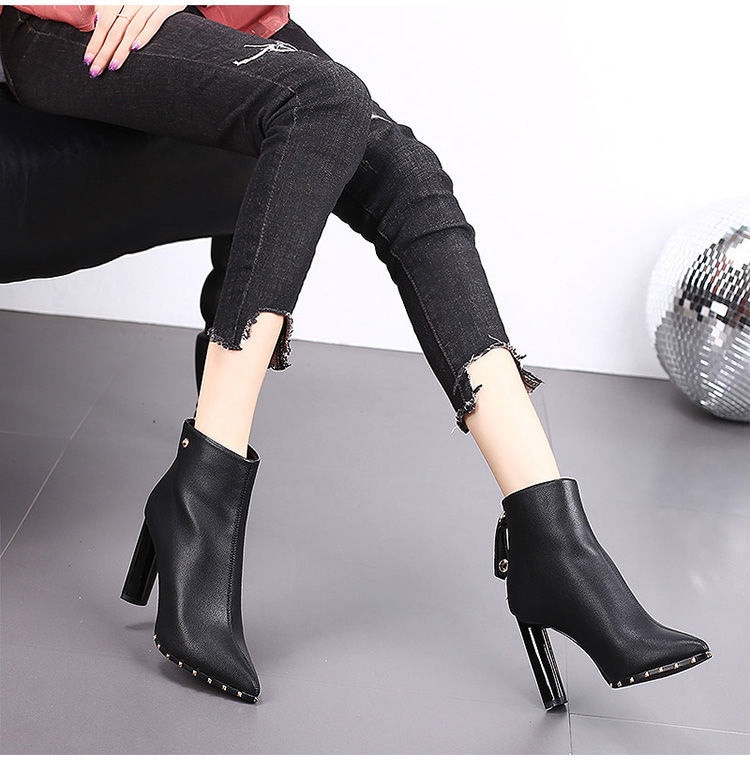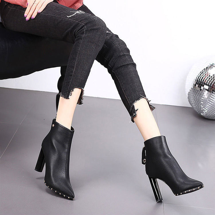 新作ポインテッドトゥ 秋冬 ハイヒール 通勤靴 韓国ファッション シューズ 太ヒール ショートブーツ レディースファッション ヒールブーツ ショート ミドルブーツ
