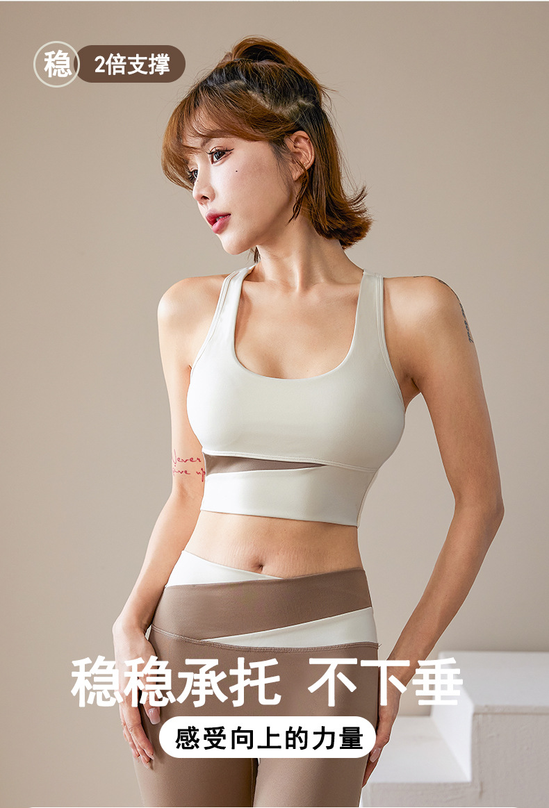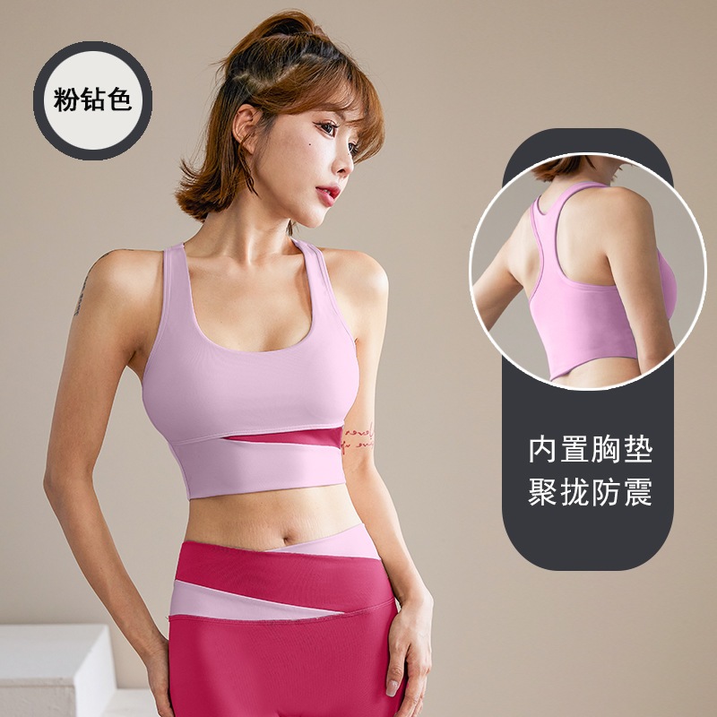おしゃれヨガウェア スーツ レディース スポーツインナー プロフェッショナル ベスト ファッション 耐衝撃 ギャザー ブラ フィットネス ランニング セット