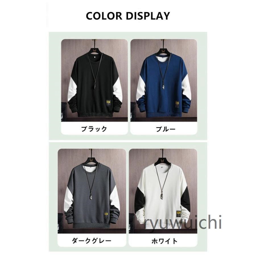 トレーナー メンズ トップス フード付き 長袖 スウェットプルオーバー スポーツ 春秋 配色 運動着 細身 おしゃれ かっこいい Tシャツ