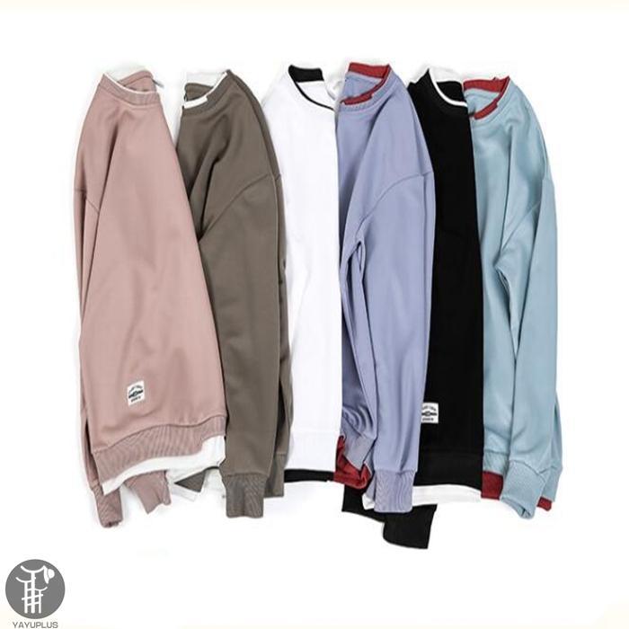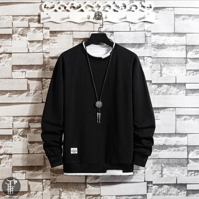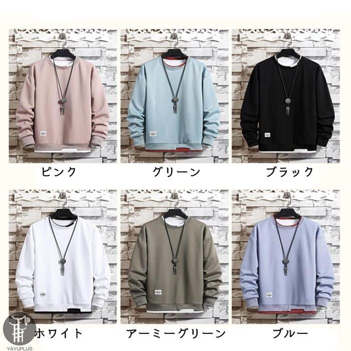 大人気 トレーナー レイヤード風Tシャツ 重ね着風 メンズ トップス 切り替え スウェット オシャレ プルオーバー 長袖 クルーネック 春服 秋服 新作