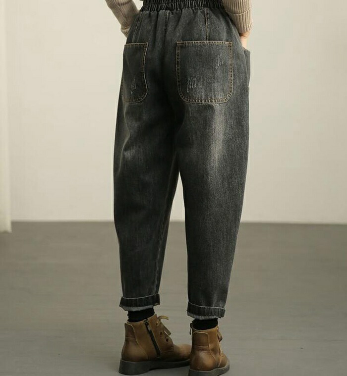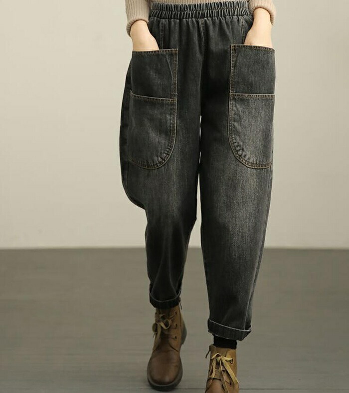 サルエル デニムパンツ レディース 大きいサイズ 選べる 裏起毛 パンツ レディース テーパード パンツ デニム 裏ボア ウエストゴム カーブ パンツ ワイド テーパード サルエルパンツ レディース
