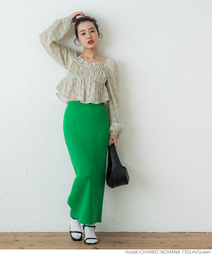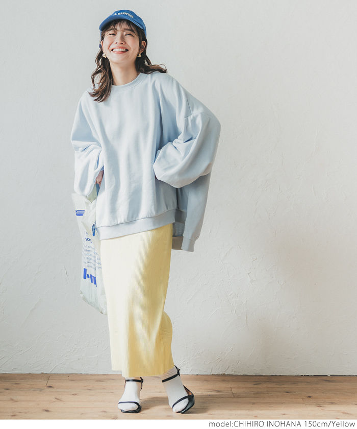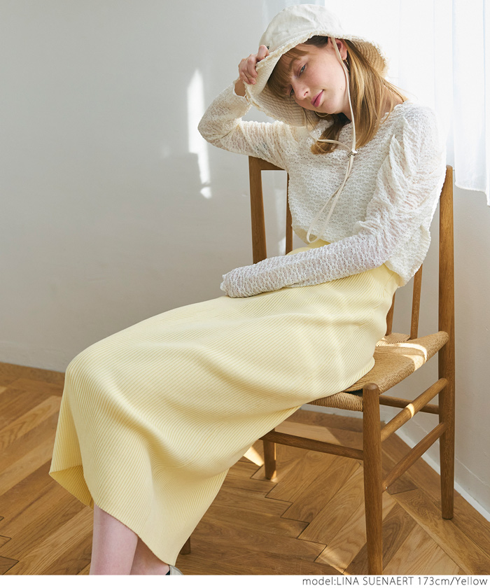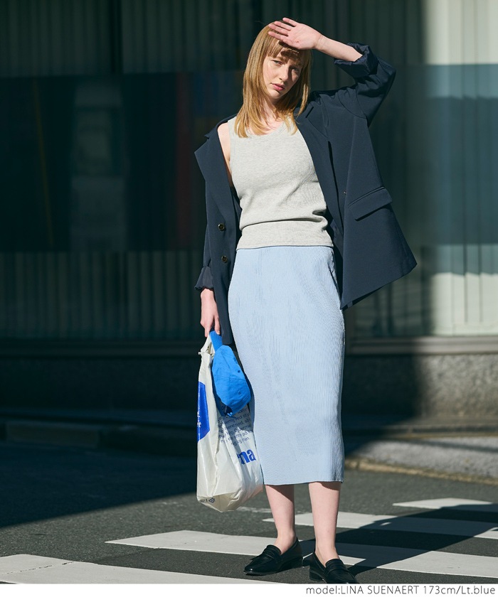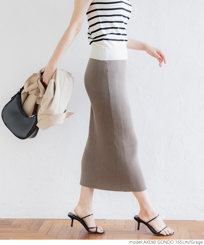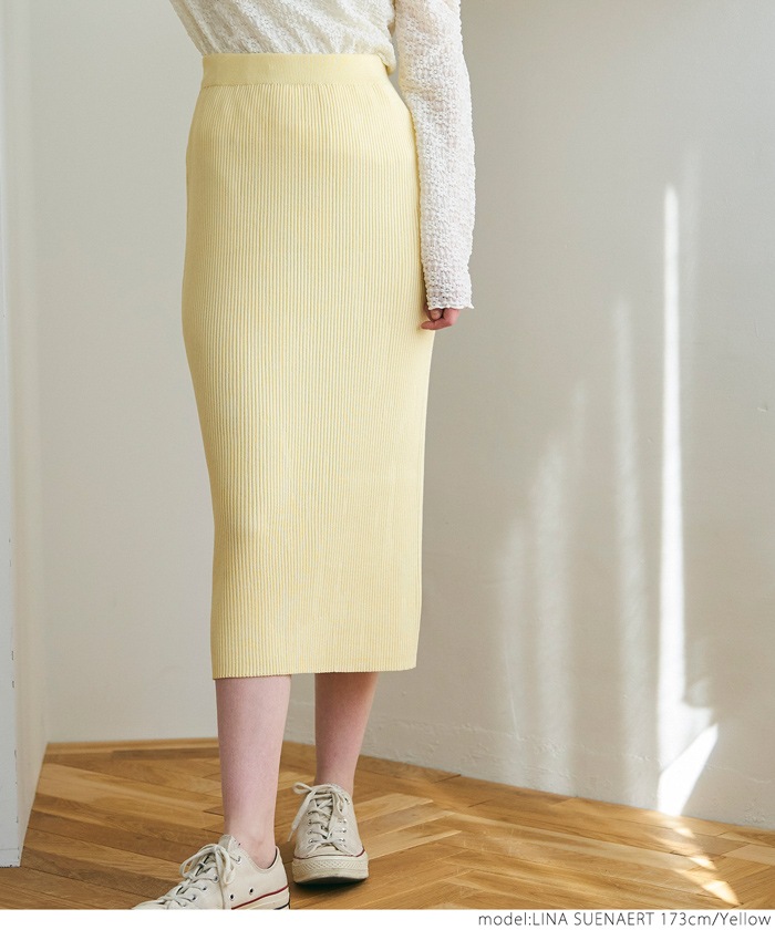 coca ニットスカート レディース シャリ感リブニット ストレート ミモレ丈 ウエストゴム Iライン ミディアム丈 ロングスカート