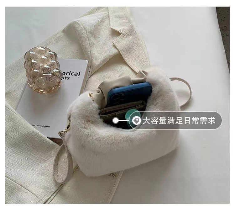 新韓国トートバッグ高級感あるモフモフの新作トートバッグニッチにも秋冬にもお洒落なクロスショルダーバッグ女性のモフモフさ ハンドバッグ