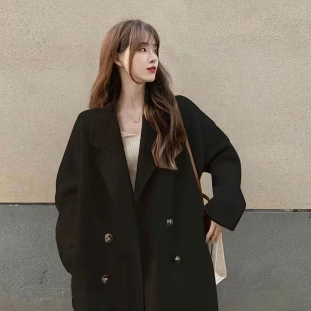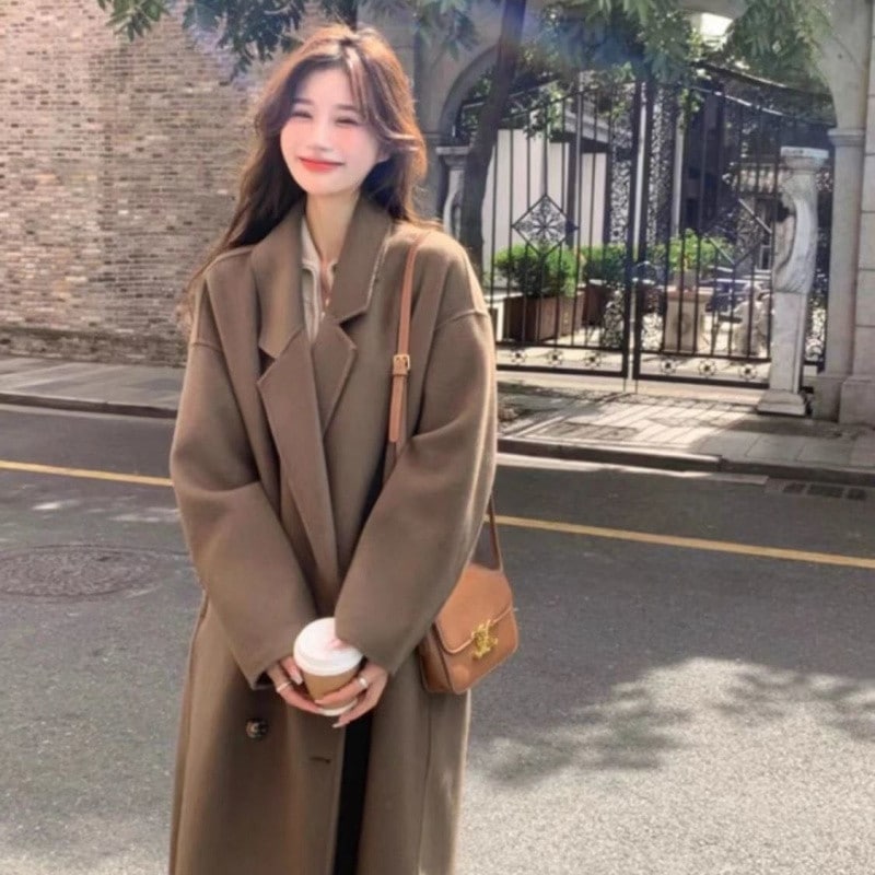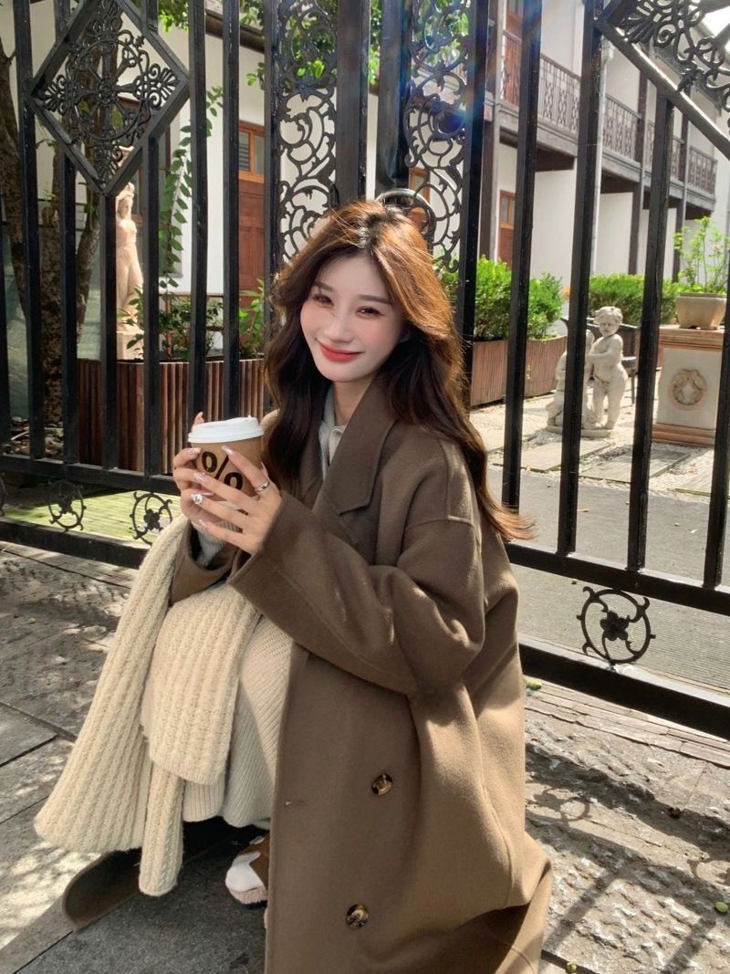 韓国ファッション 秋冬ロングコートラシャアウターレディース ジャケットトップス厚手体型カバー トレンチコートセミロング丈気質 通勤 ゆったり大きいサイズ 怠惰な風 チェスターコート