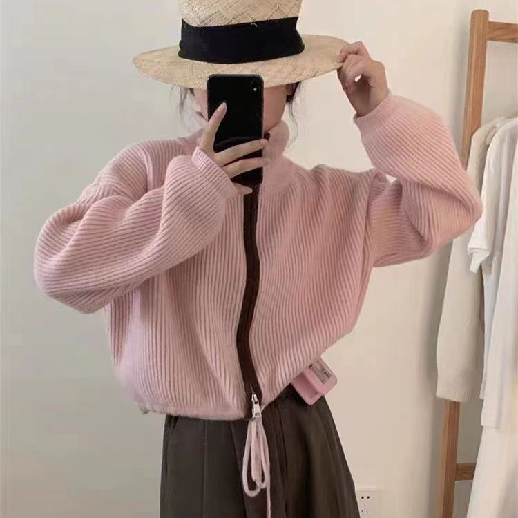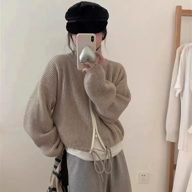 ニットカーディガン 厚手 レディース 春秋ゆったり ボリューム袖 アウター トップス 前開き もこもこ暖かふわふわ 体型カバー フェミニン 無地 ゆったり 柔らか 韓国ファッション セーター
