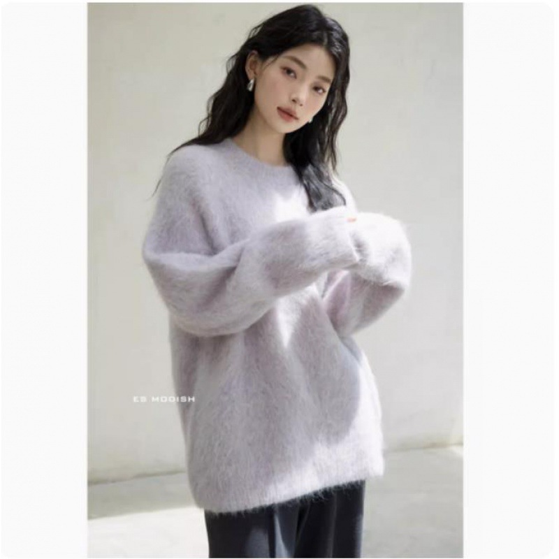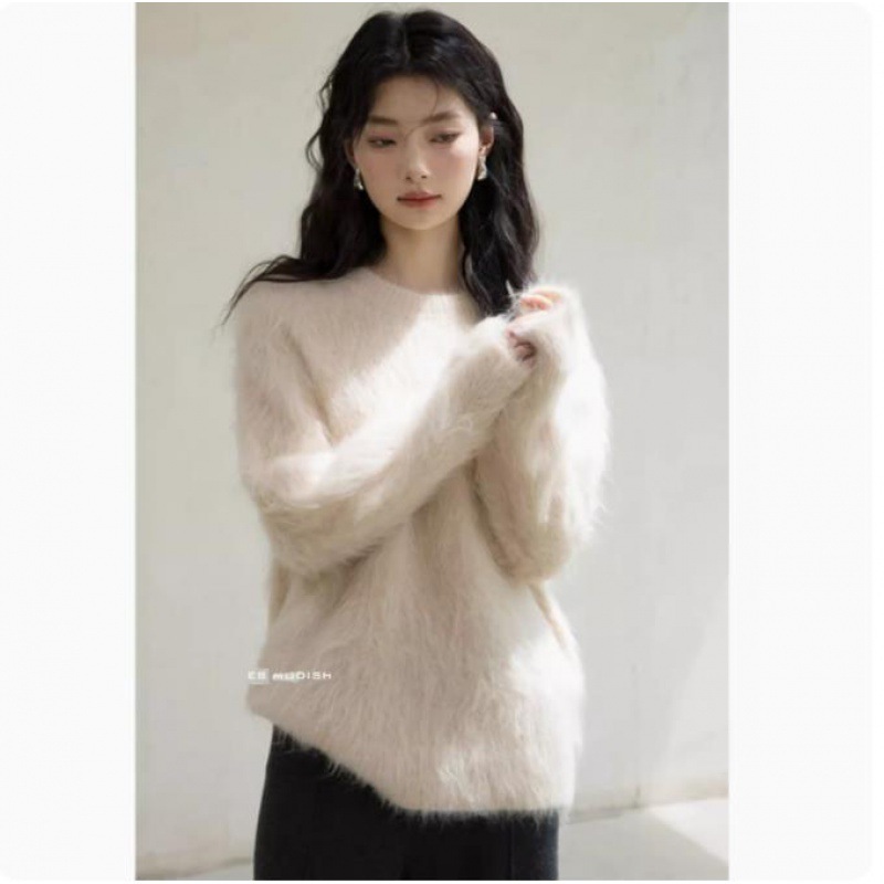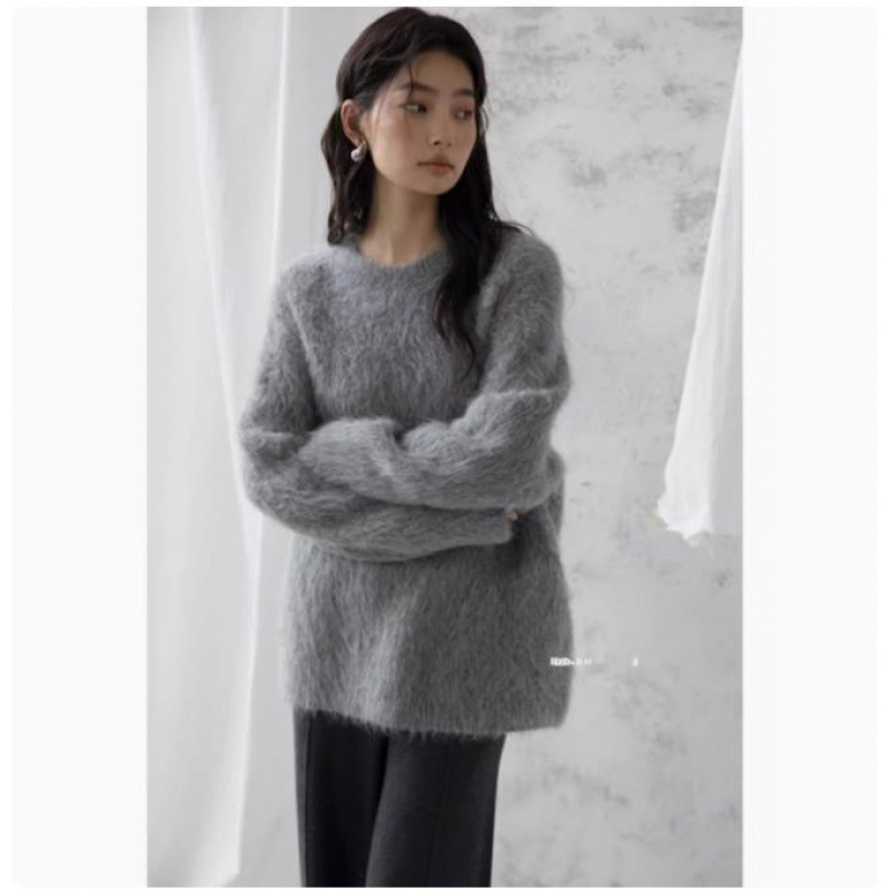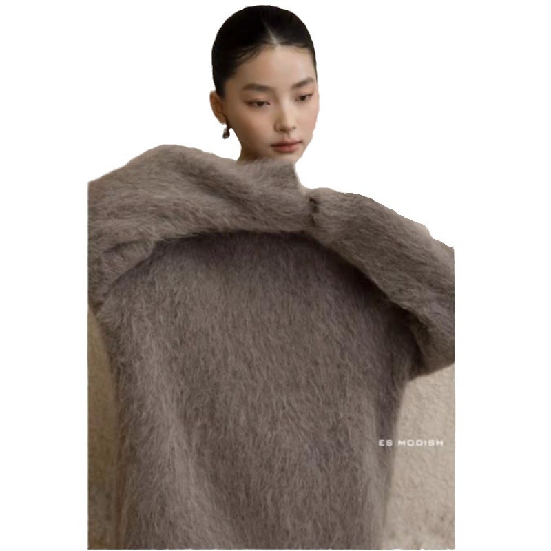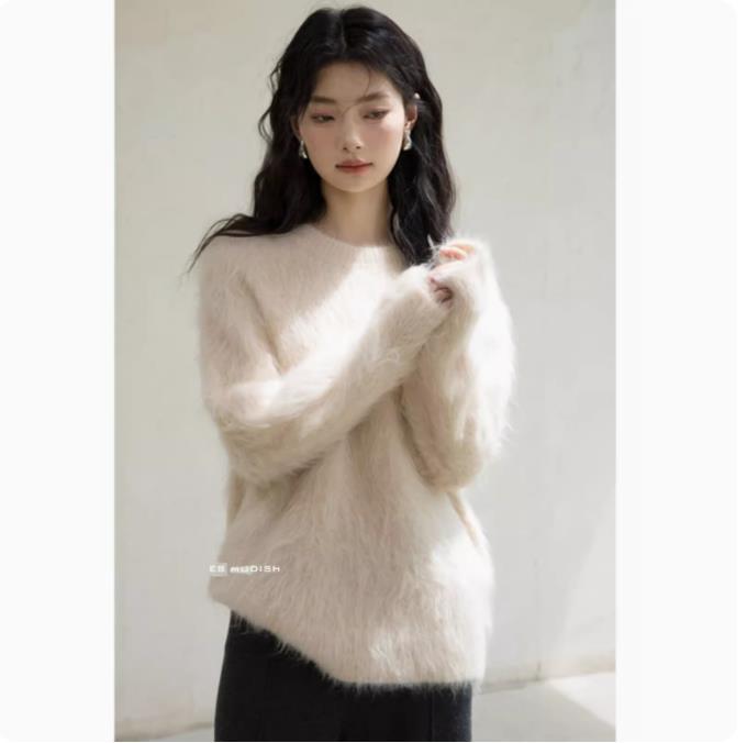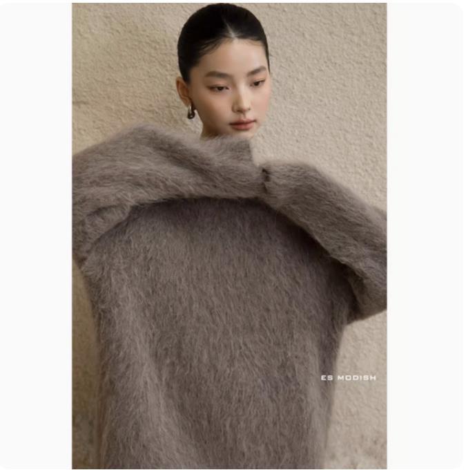 極.暖 高品.質保温 無地 長袖トップス ニット セーター レディース 冬 長袖 ラウンドネック モヘア シャギー オーバーサイズ ゆったり ドロップショルダー