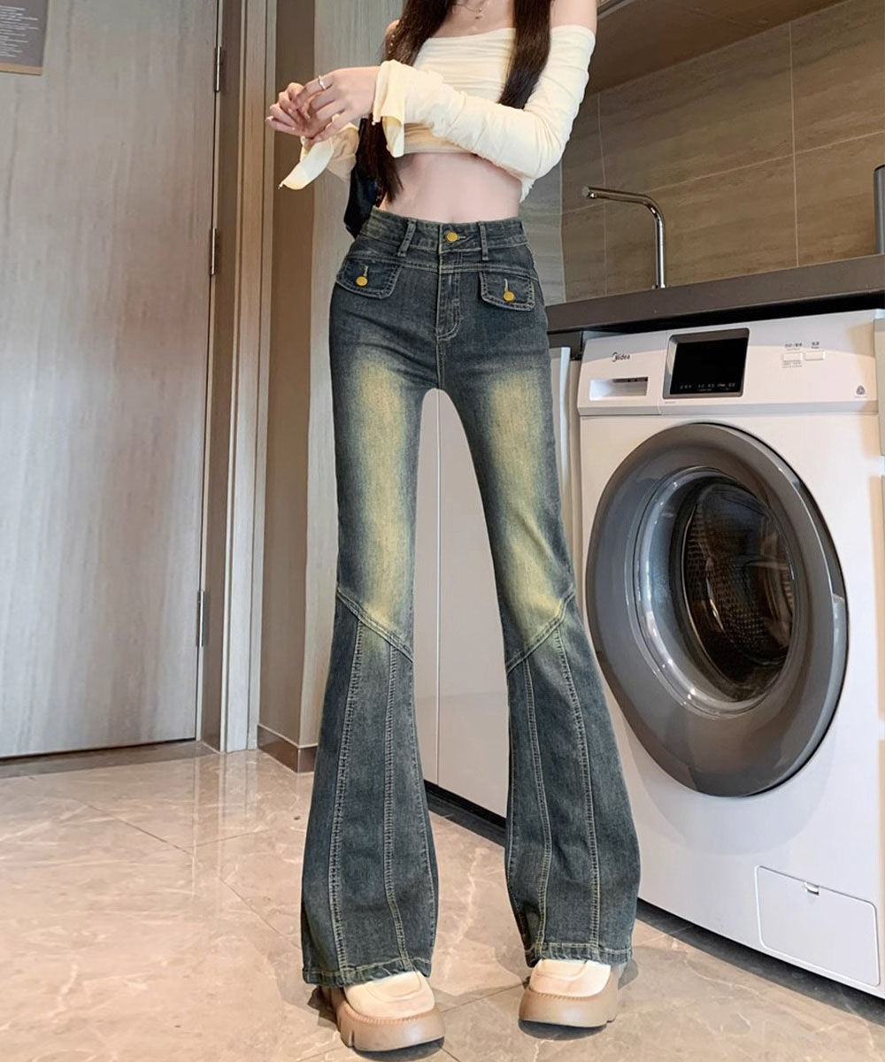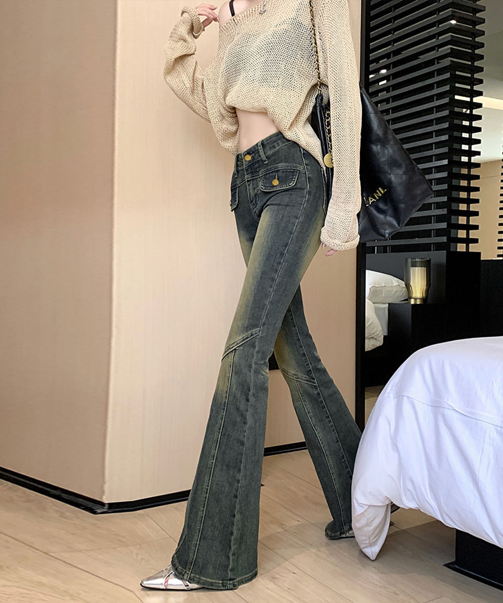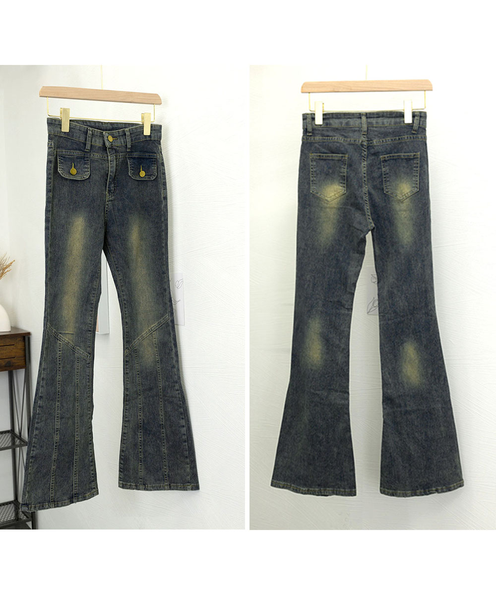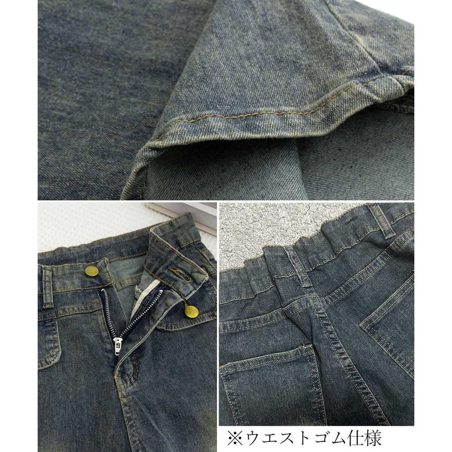 脚長効果 デニムパンツ レトロ セミフレアレディース ファッション デニム ジーンズ