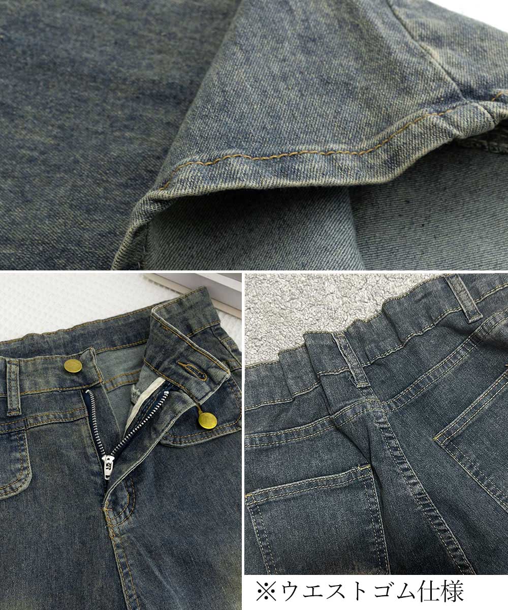 デニムパンツ ビジュー付き