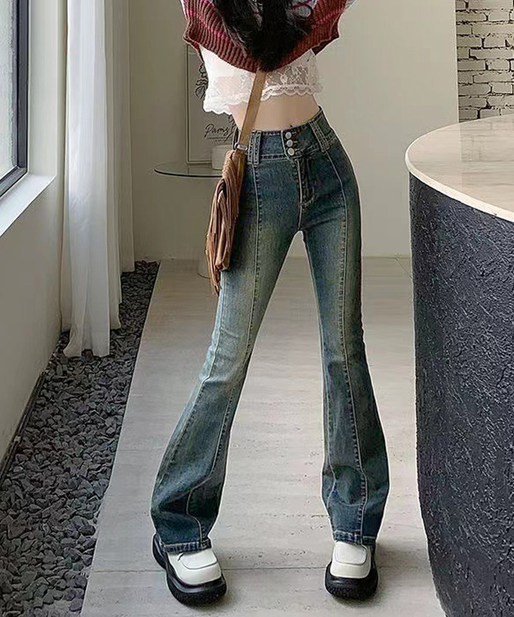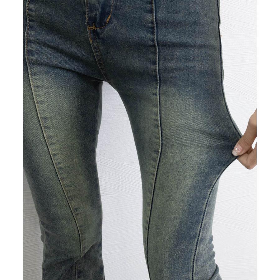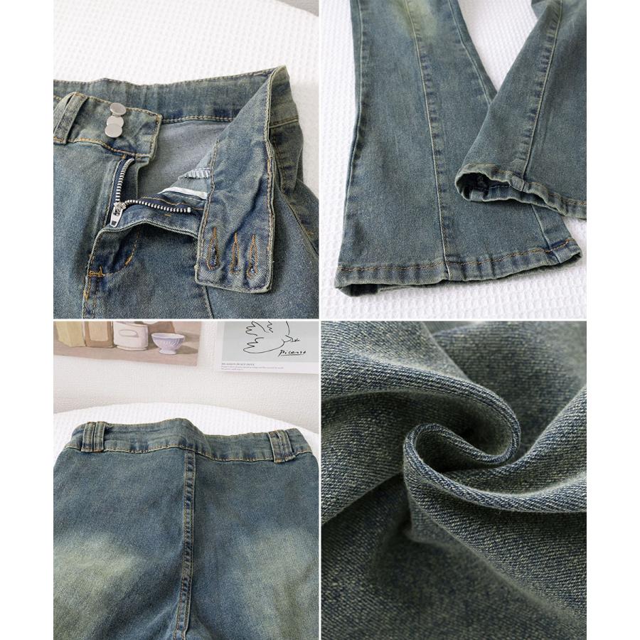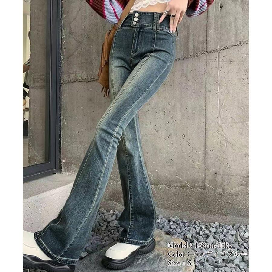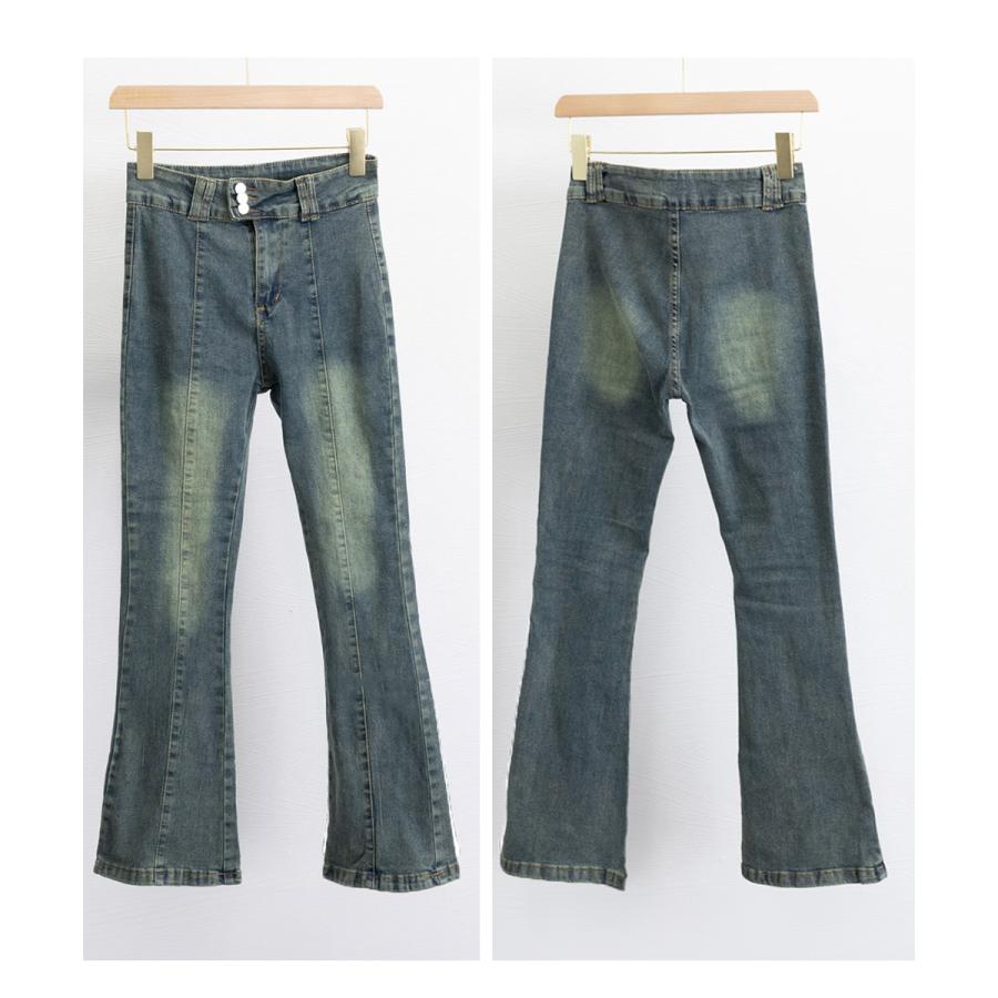 脚長効果 デニムパンツ レトロ セミフレアレディース ファッション デニム ジーンズ