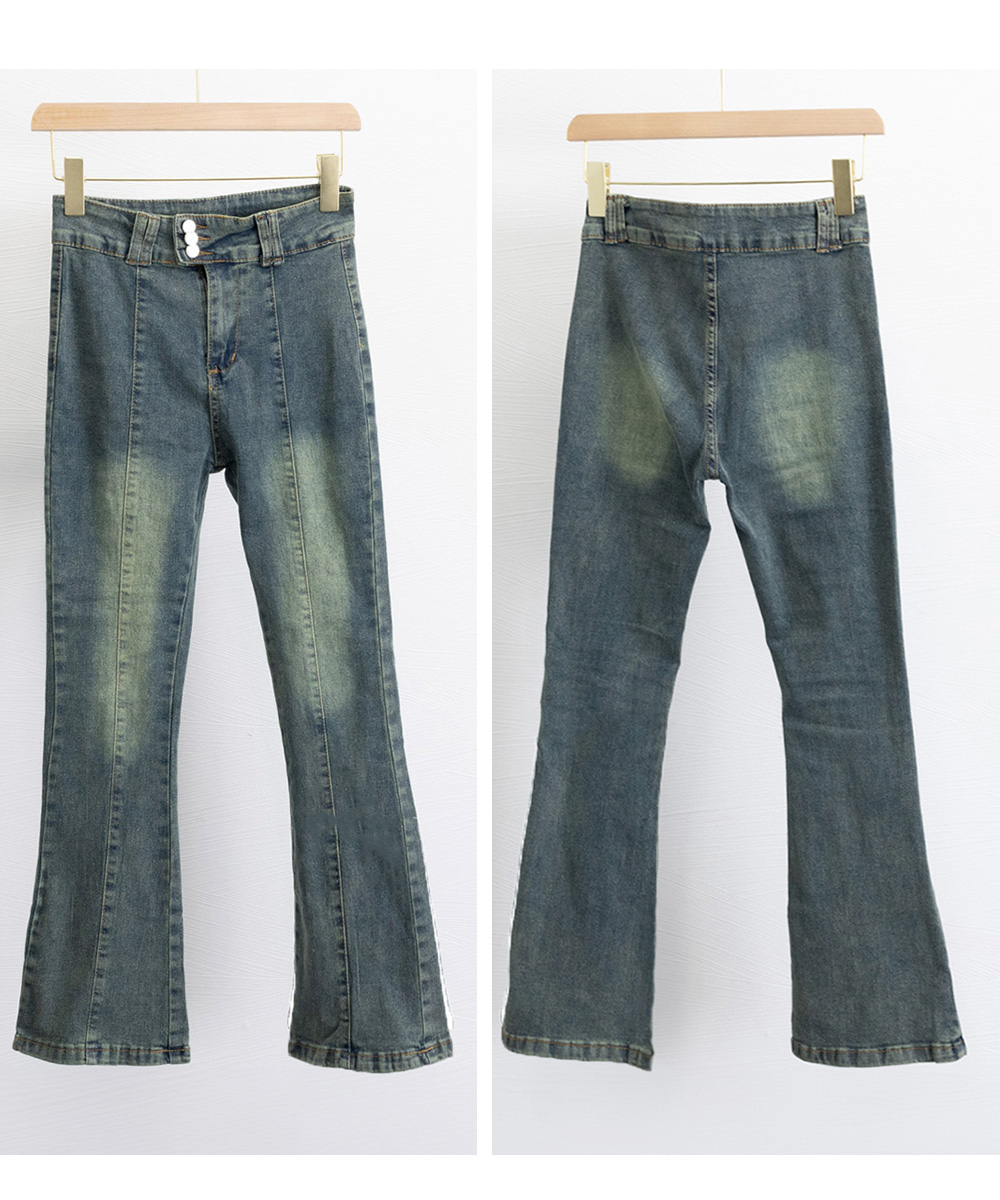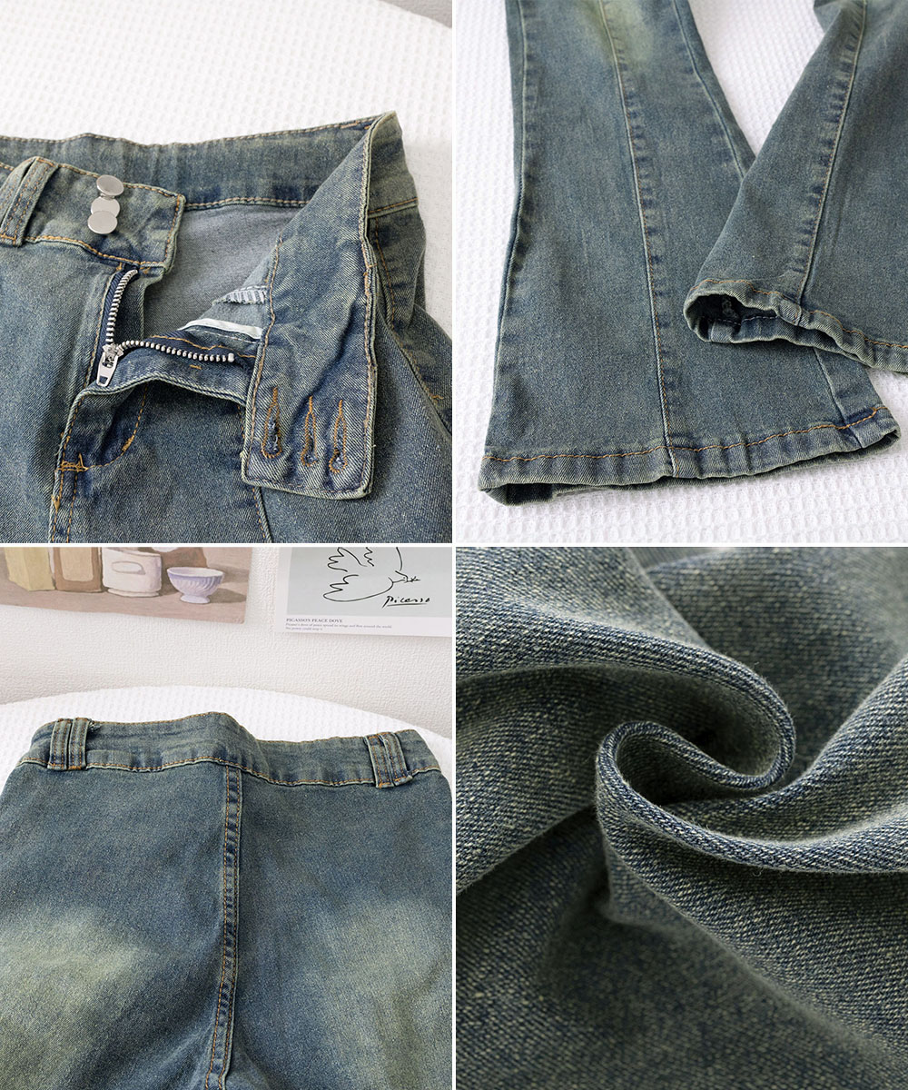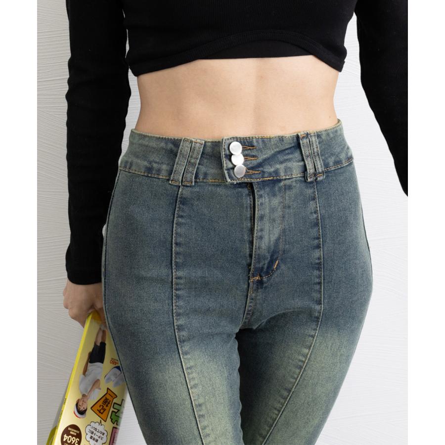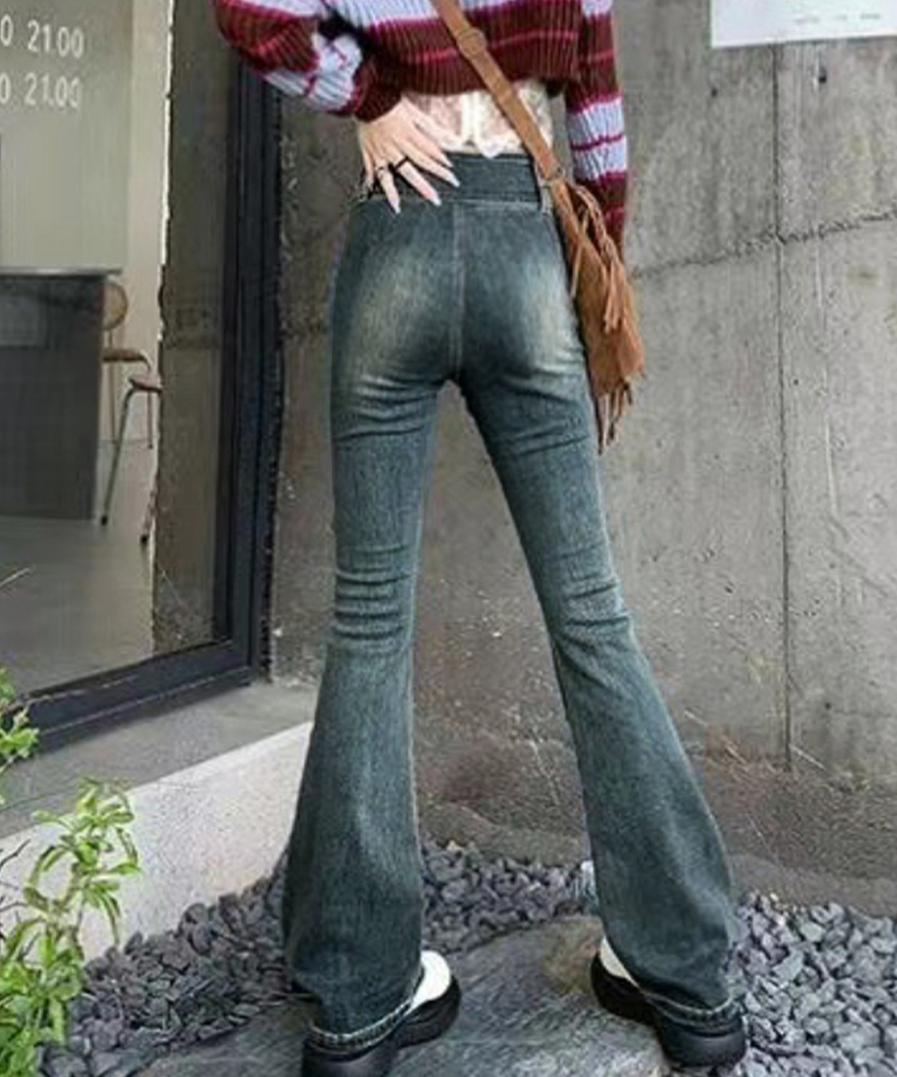 脚長効果 デニムパンツ レトロ セミフレアレディース ファッション デニム ジーンズ