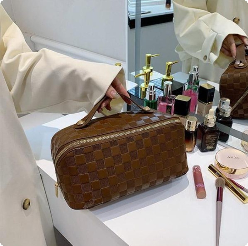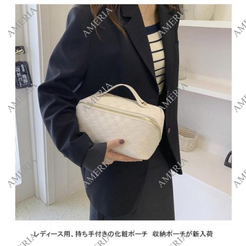 化粧ポーチ レディース 収納ポーチ 無地 持ち手付き コンパクト 合皮 自立 仕分け 大容量 機能的 防水 柔らかい 小物入れ シンプル ポーチ