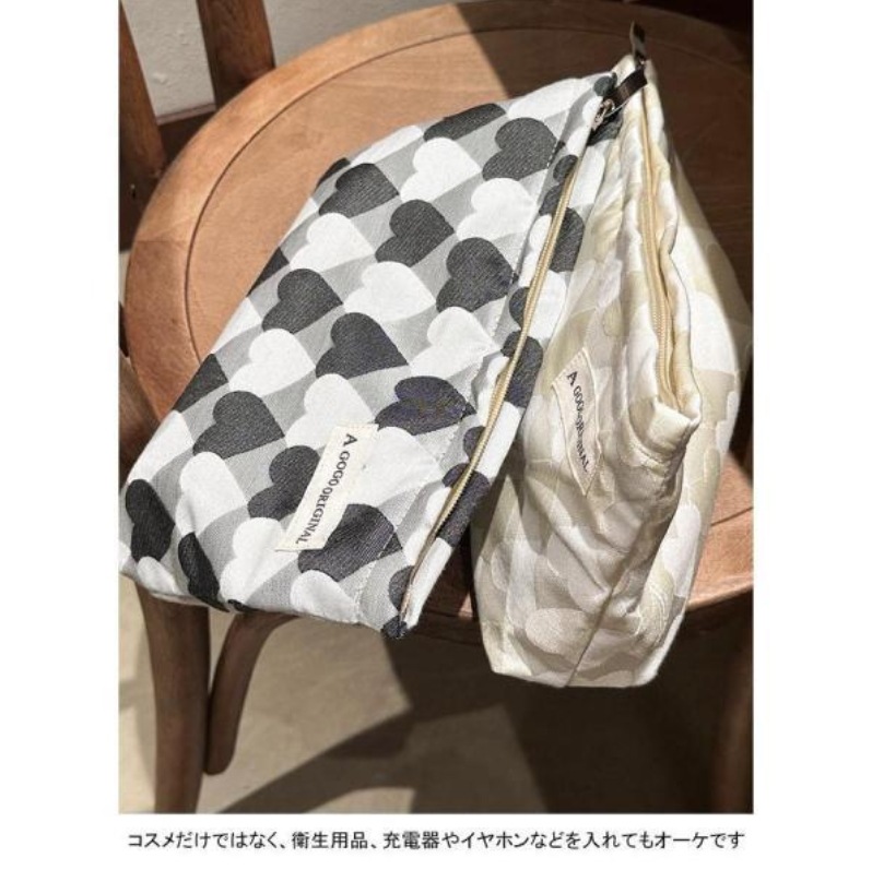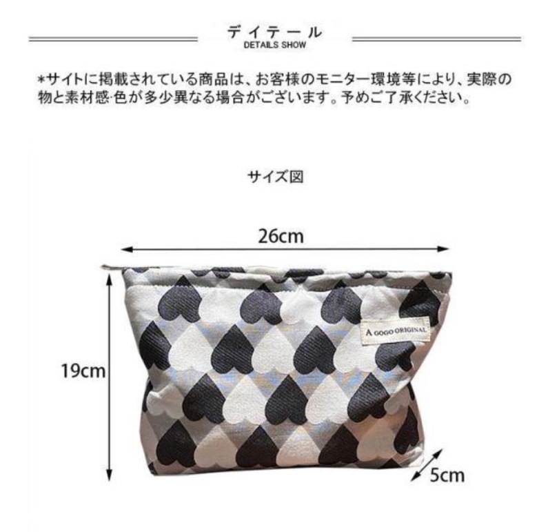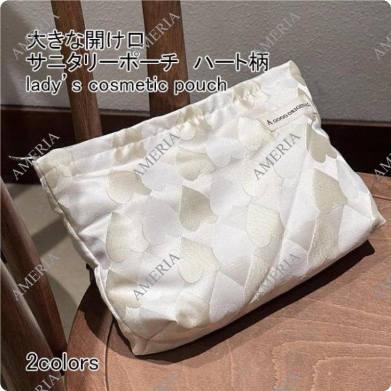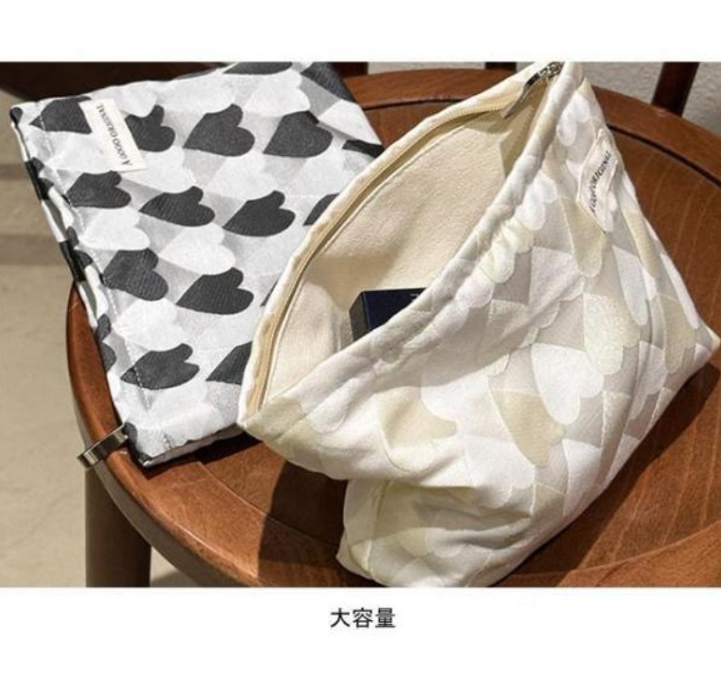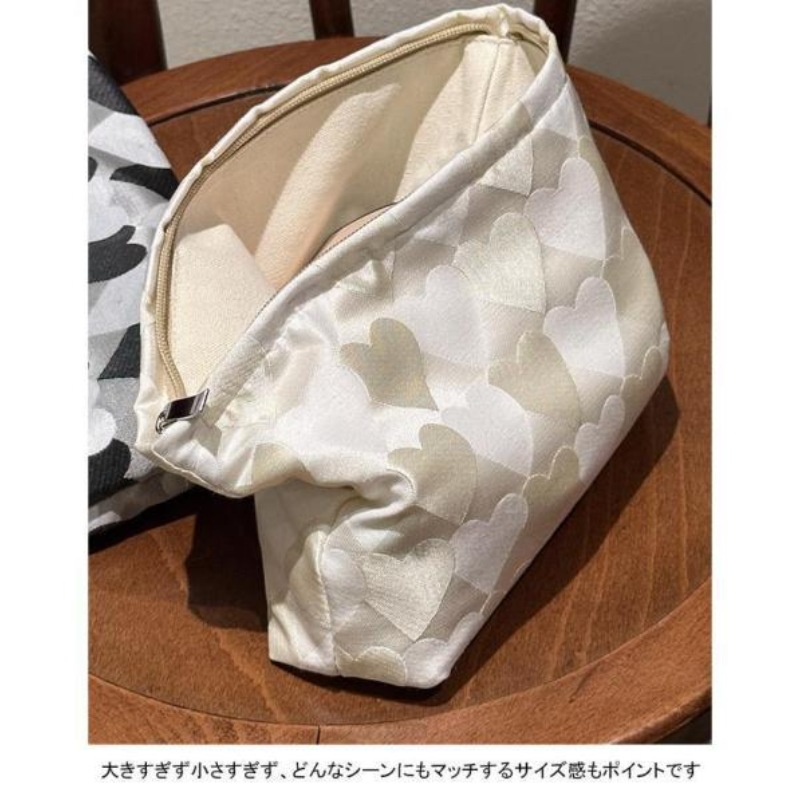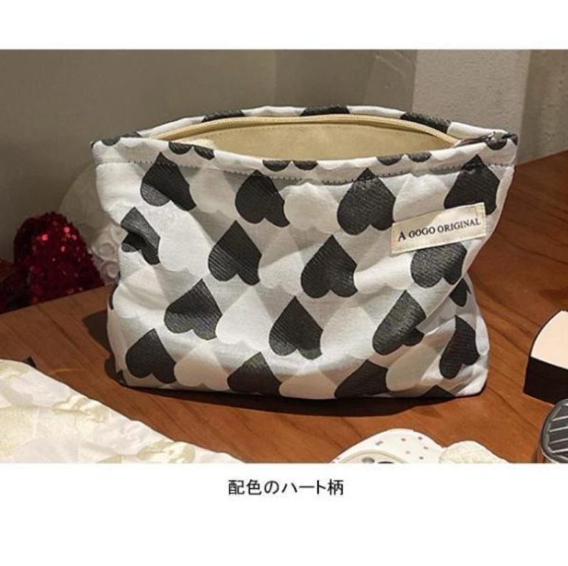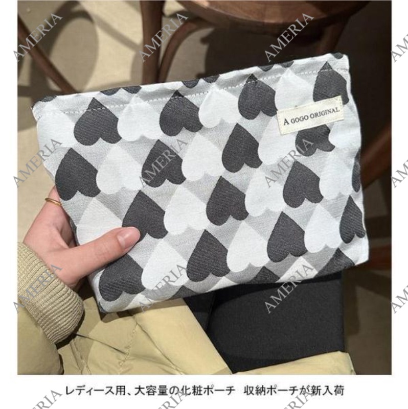 化粧ポーチ レディース 収納ポーチ 配色 ハート柄 ファスナー付き コンパクト 大きめ 大容量 使いやすい 持ち運び 小物入れ 便利グッズ ポーチ