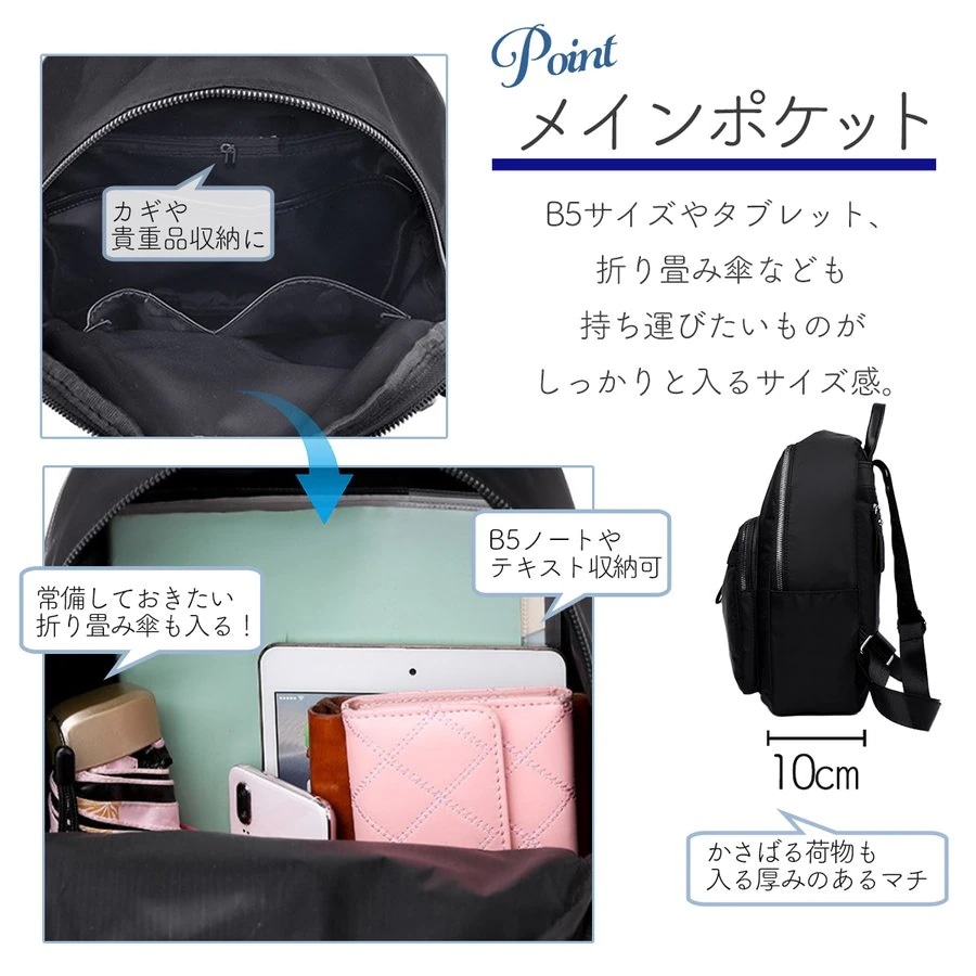 リュック レディース シンプル ミニリュック 黒 通学 通勤 小さめ 撥水 軽量 多収納 コンパクト リュック デイパック