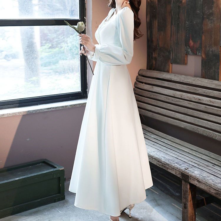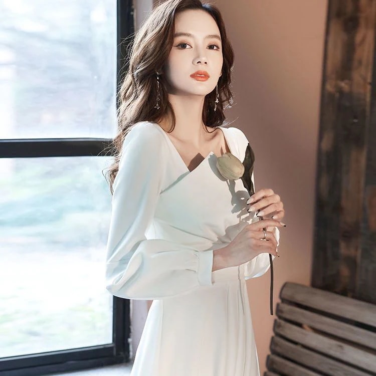 レディース ファッション エレガント快適です 気質 ホワイト ドレス 新しい 宴会 主宰 ハイエンド ワンピース ドレス