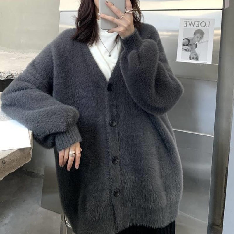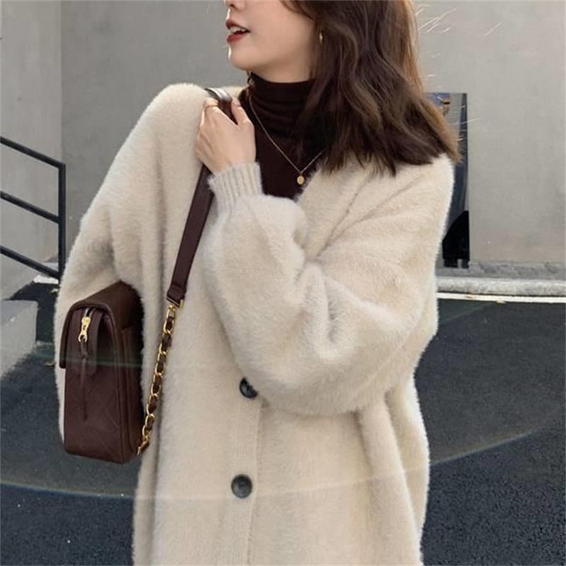 ニットカーディガン 厚手 レディース 春秋ゆったり ボリューム袖 アウター トップス 前開き もこもこ暖かふわふわ 体型カバー フェミニン 無地 ゆったり 柔らか 韓国ファッション セーター