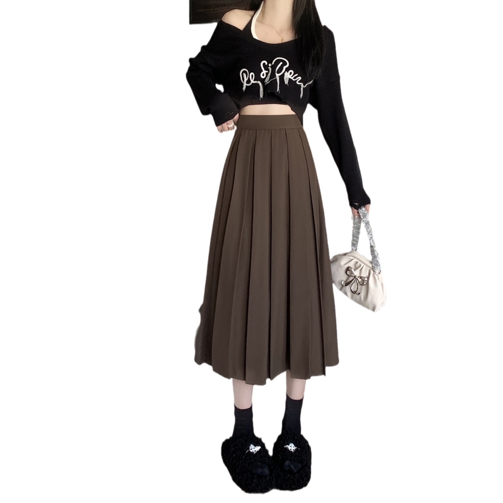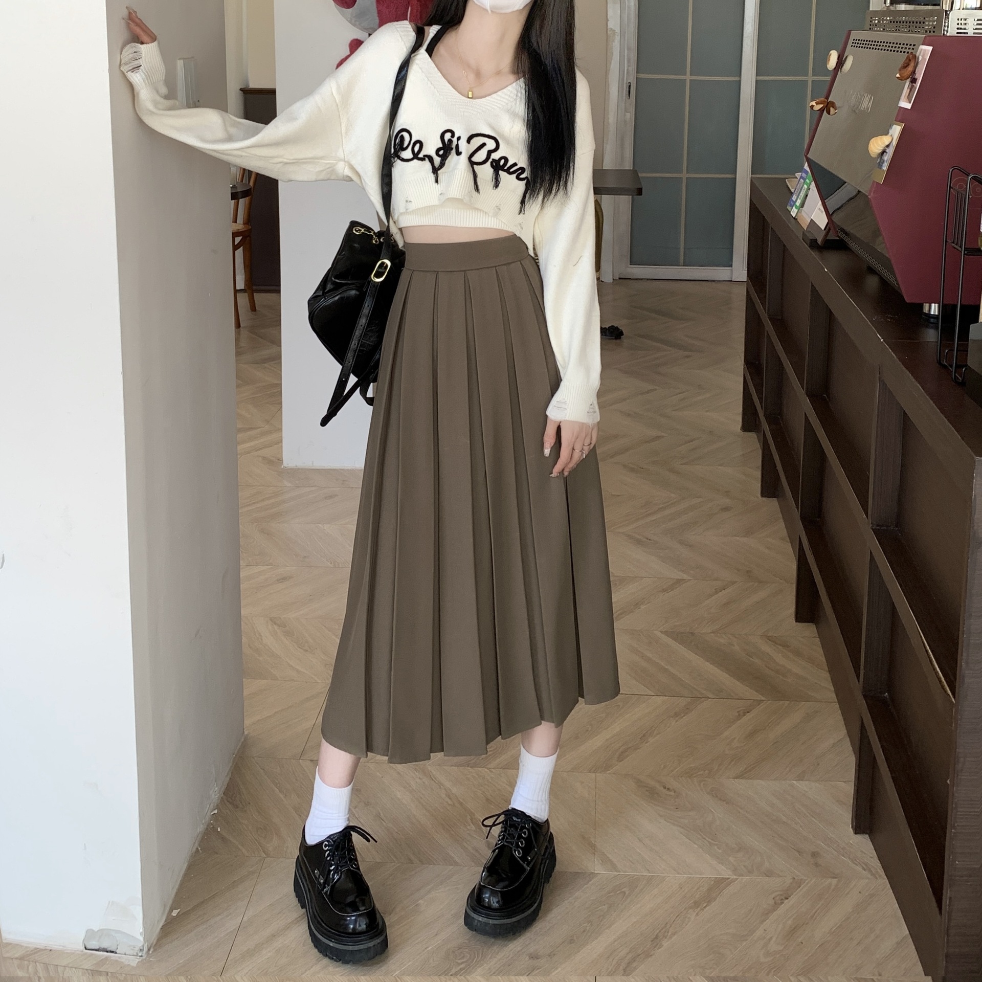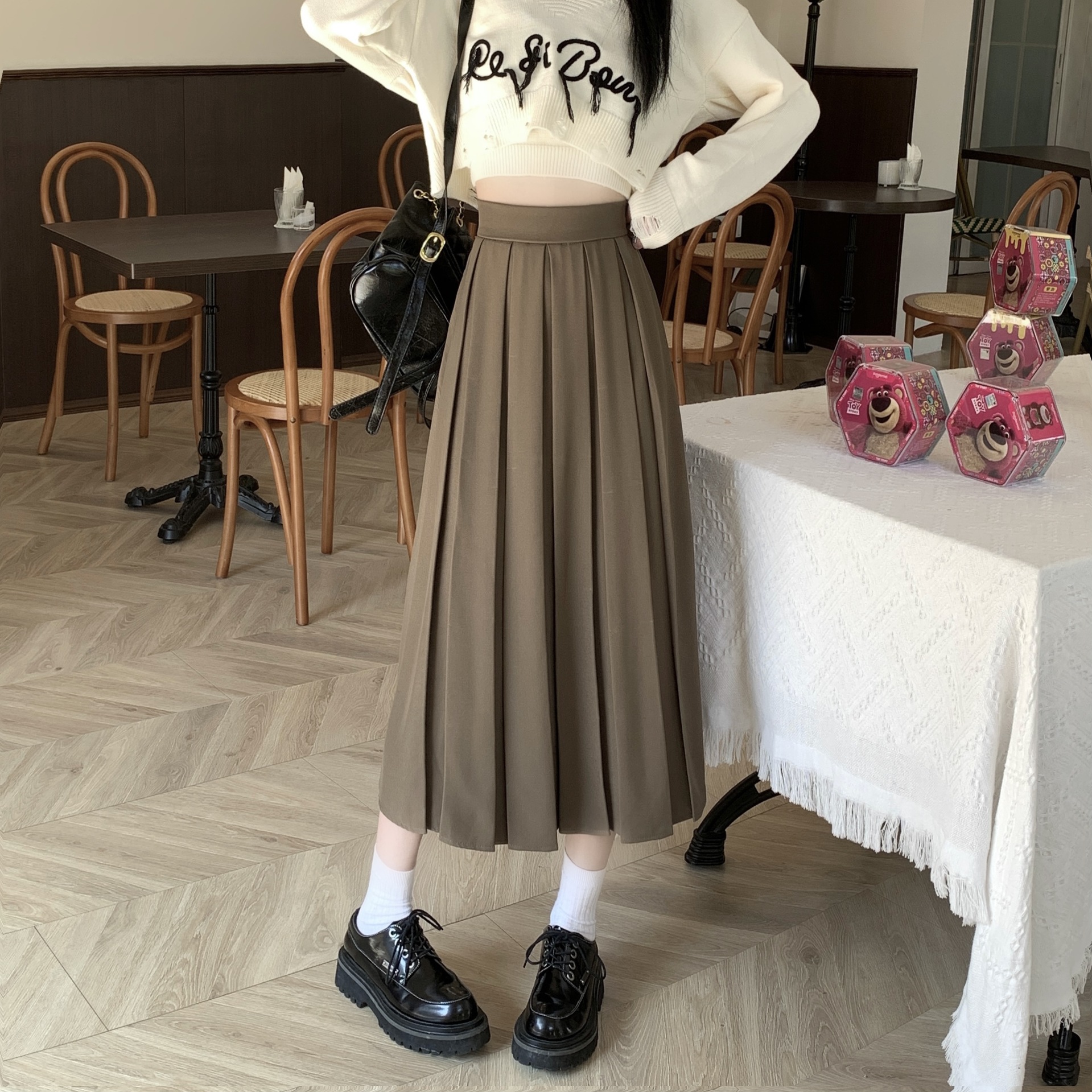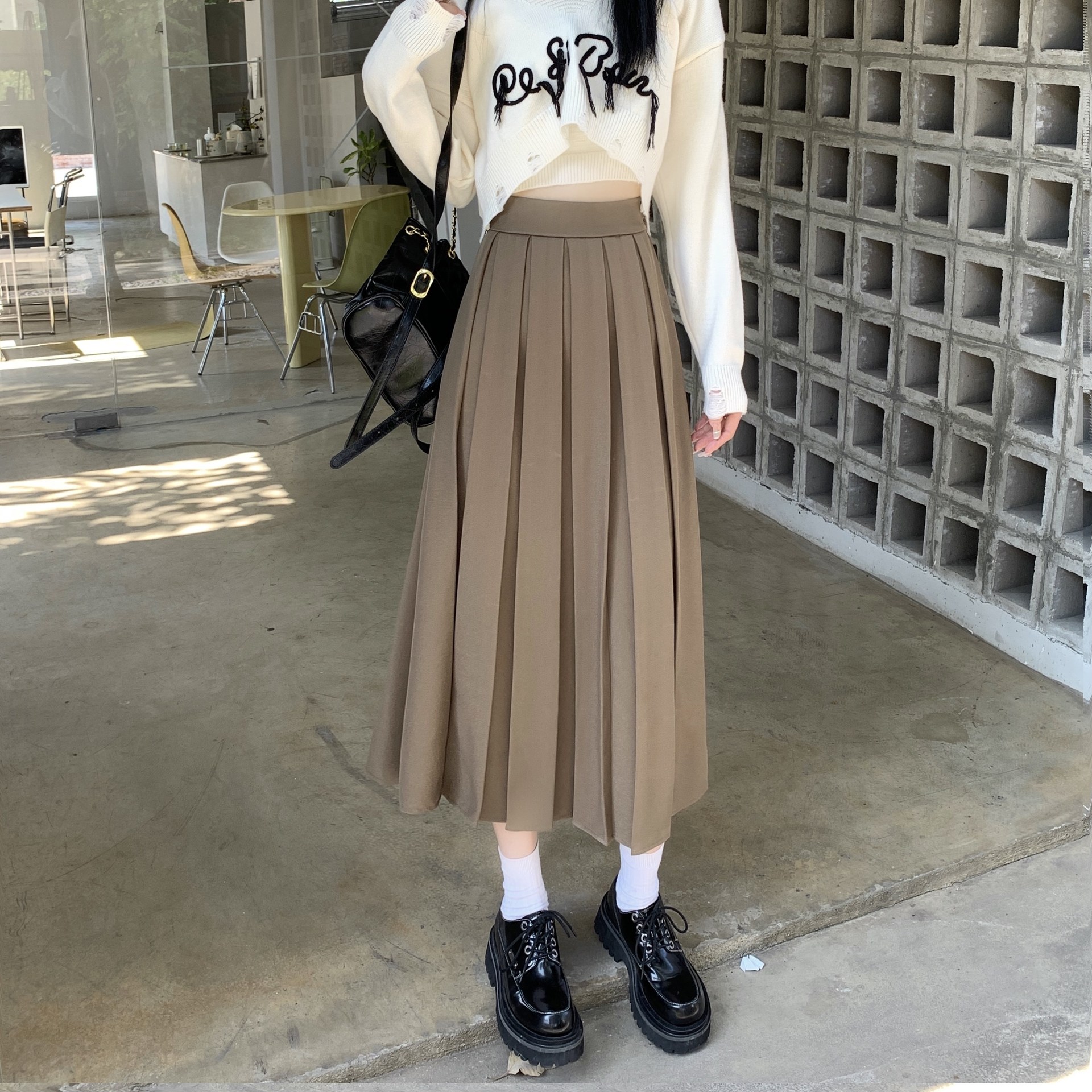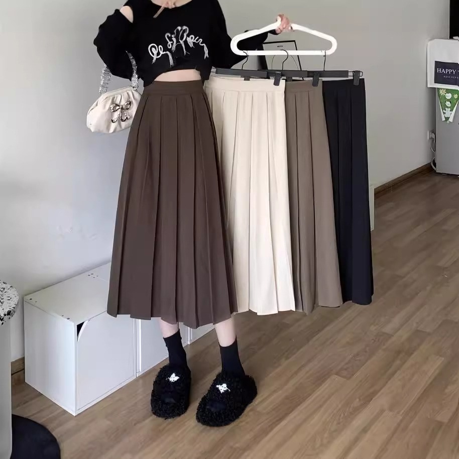 春 人気 スカート プリーツ ハイウェスト ロングスカート ミディアム Aライン スカートロング丈 冬 レディース 韓国ファッション ロングスカート
