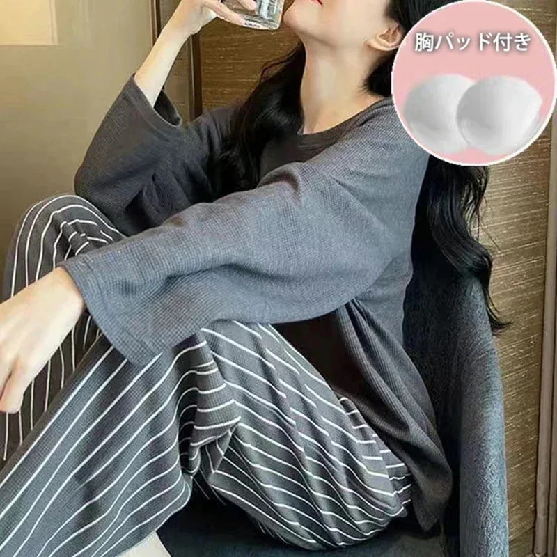 2024 長袖 パジャマ 新作 胸パッド付き 大人気 上下セットレディース 長袖 半袖 ルームウェア 部屋着 寝間着 セット パジャマ