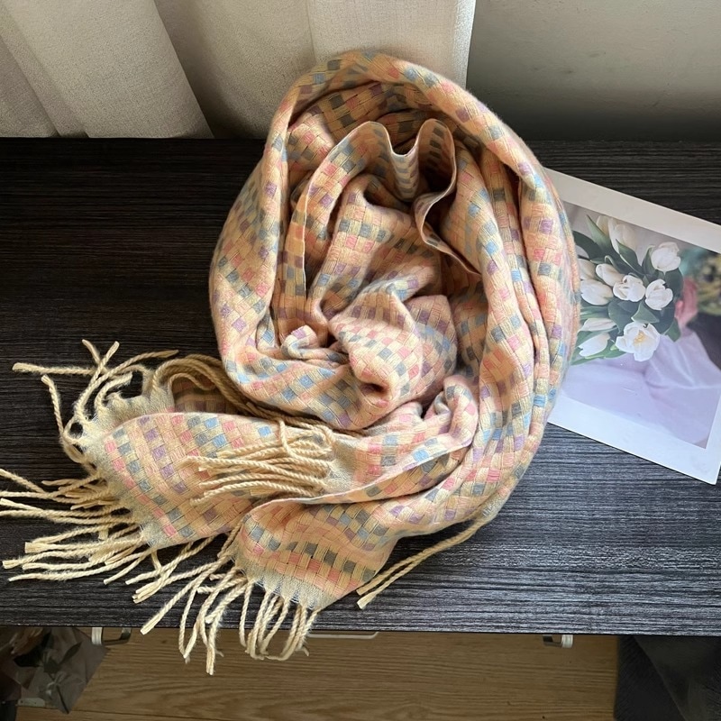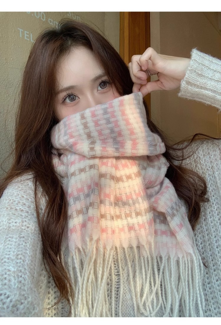 デイリーマフラー 2025秋冬カシミヤ ins 新品 寒さ対策 厚手 保温ストール 新しいマフラー レディース ファッションフリンジマフラー