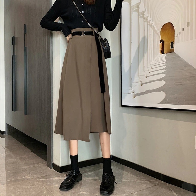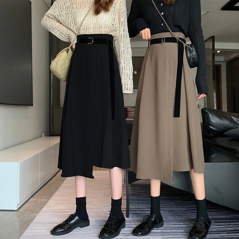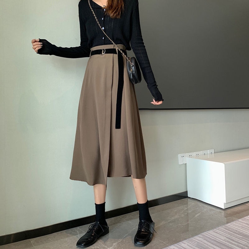 ハーフスカート せミニスカート サテンスカート 人気新作 プリーツスカート サテンスカート新作ロングフレアスカートハイウエストレトロベルトをプレゼント 韓国ファッション