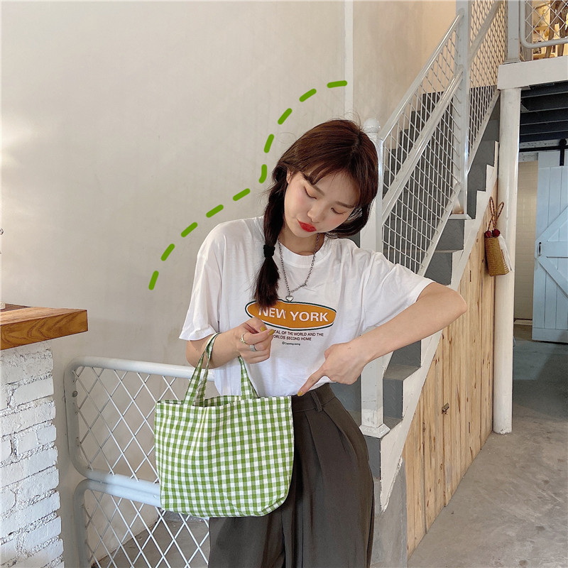 2024エコバッグ携帯用弁当袋 レディーストートバッグ チェック通学 通勤 旅行に便利バッグ トートバッグ