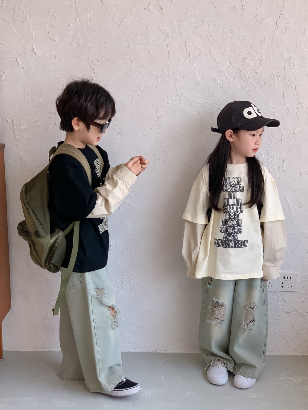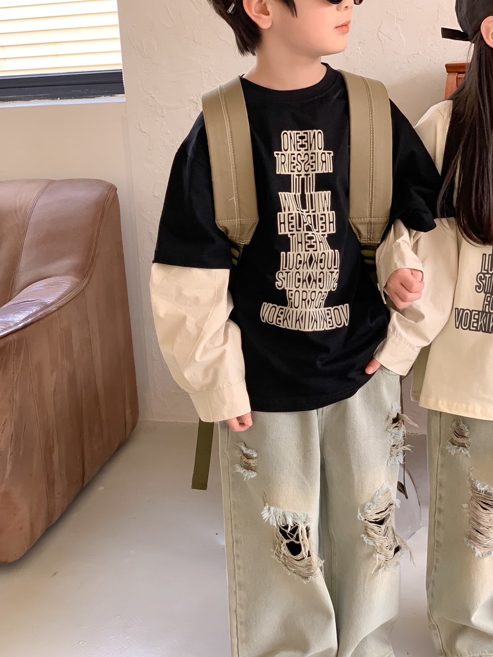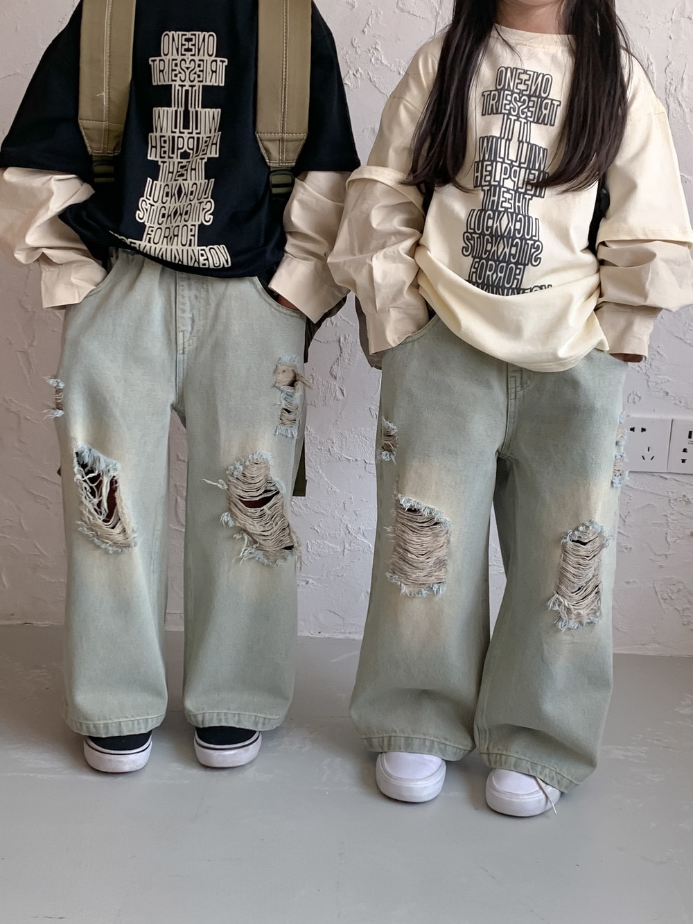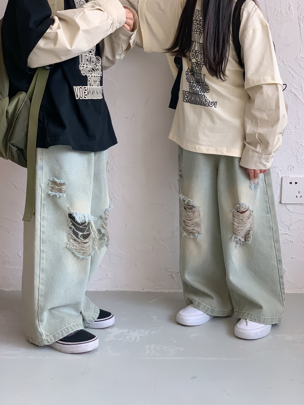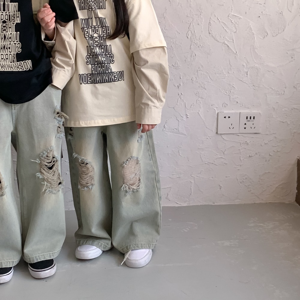 韓国おしゃれパンツ2024春女の子カジュアルボトムジーンズゆったりストレートパンツ男の子子供服 ボトムス