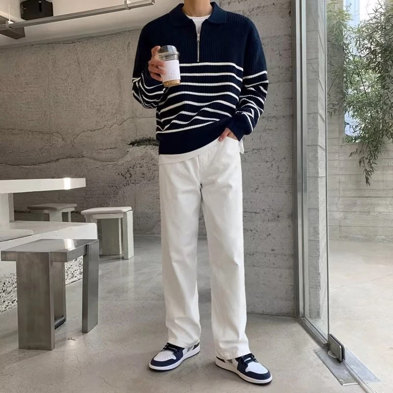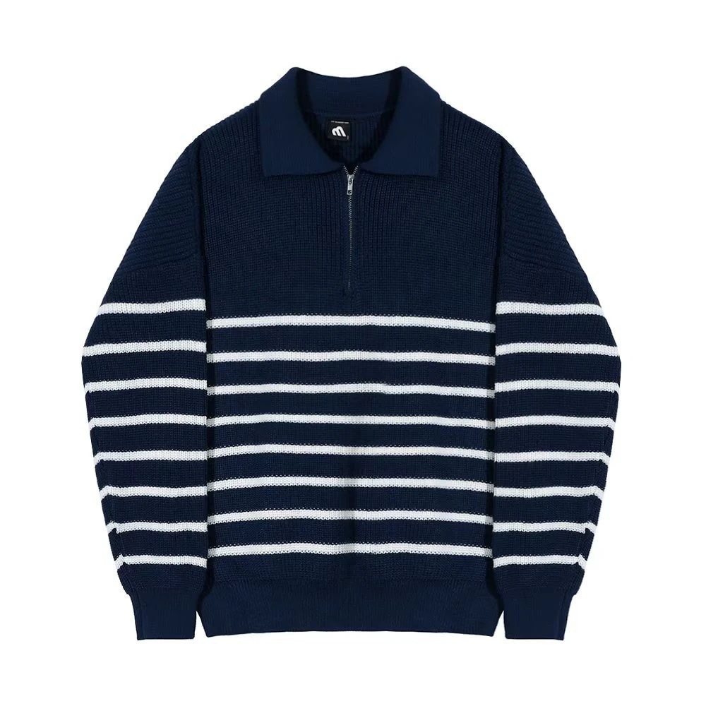 ラペルニットセーターカップルセーターカジュアルポロシャツジャケット ストライプジャンパーメンズ韓国語バージョン ニット セーター