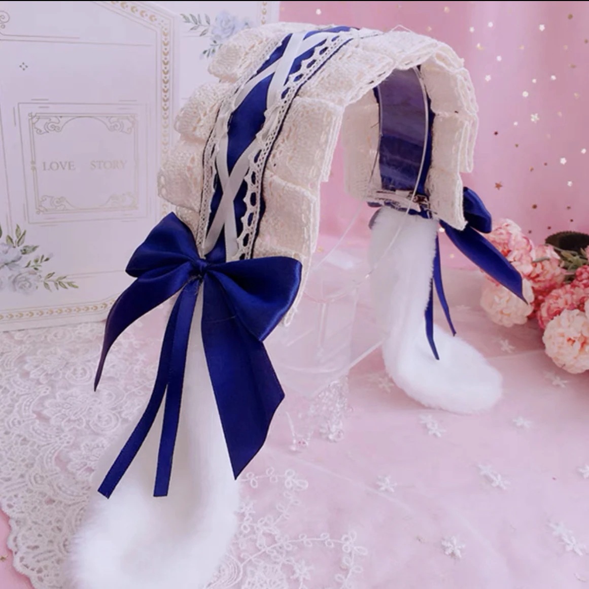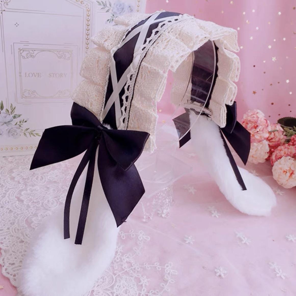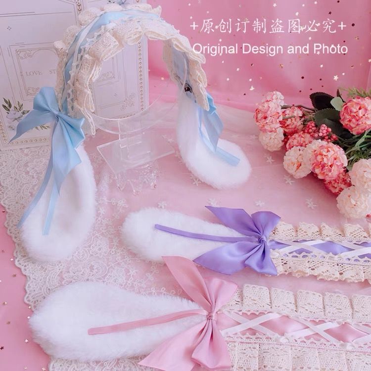 日系萌え妹ロリータレース髪飾り甘いkcヘアバンドlolitaウサギ耳メイド二次元 キャップ ヘッドアクセサリー
