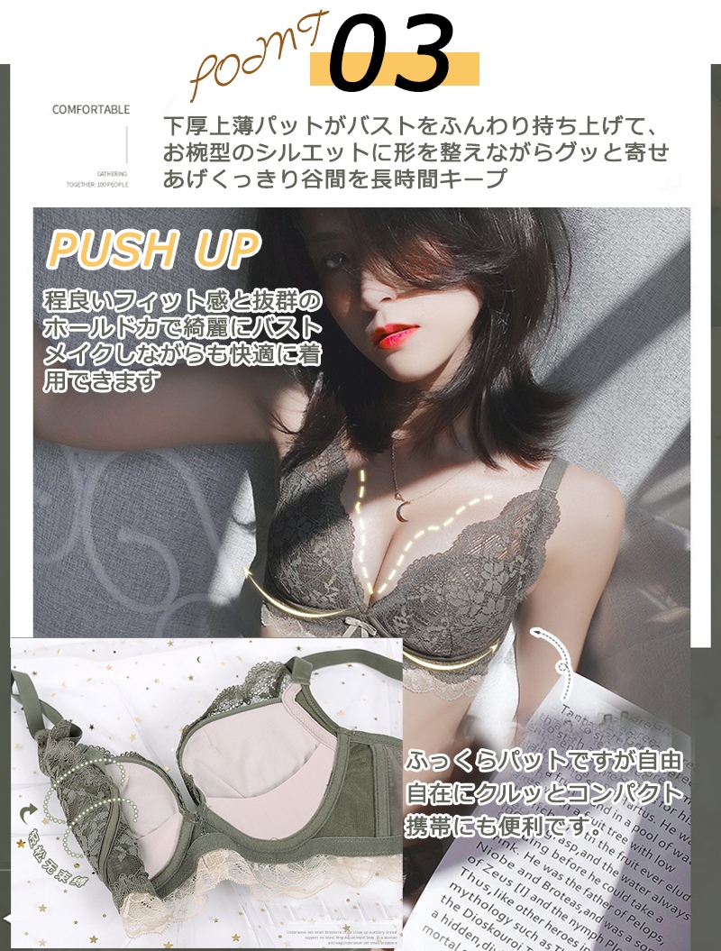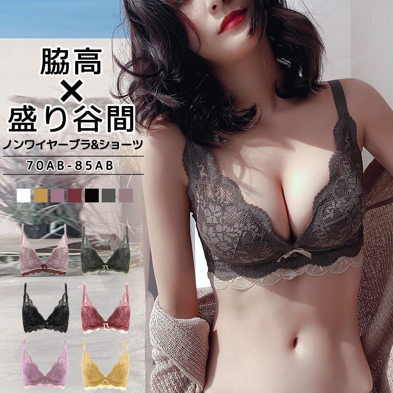 ブラショーツセット下着 上下セットブラジャー ショーツ 下着 セットノンワイヤ 9cm脇高設計 谷間メイク 柔らかい ルームウェア ブラ 補正下着