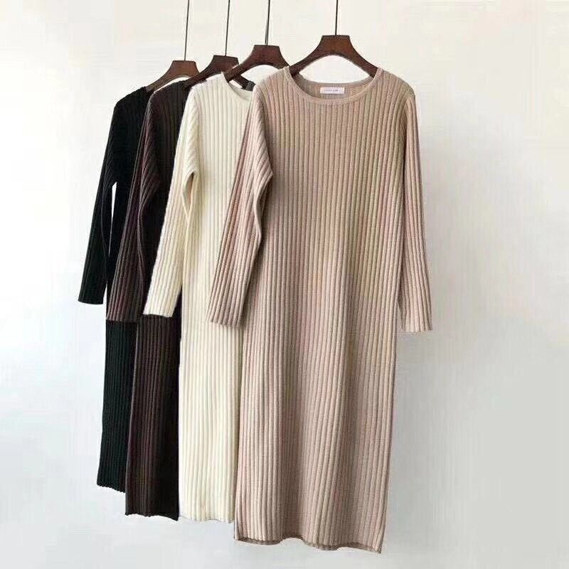 秋冬 ニットワンピース マキシ丈 ロング丈 おしゃれ 可愛い ゆったり ゆるフィット 体型カバー 長袖 着痩せ 新作 ベーシックニット