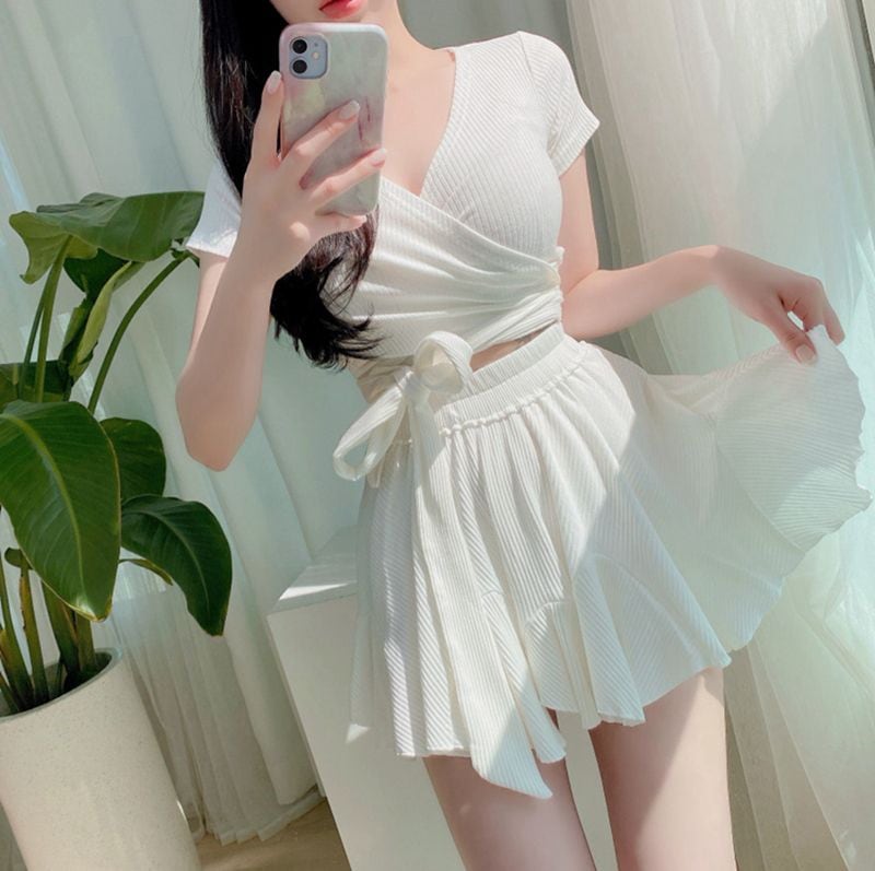 水着 韓国ファッション 激安水着 2025 新作韓国ファッション 水着女性セパレートins風コンサバスカートが温泉水着に ワンピース水着