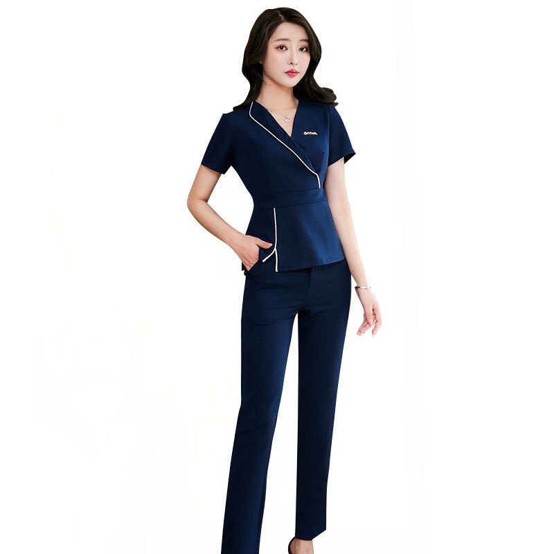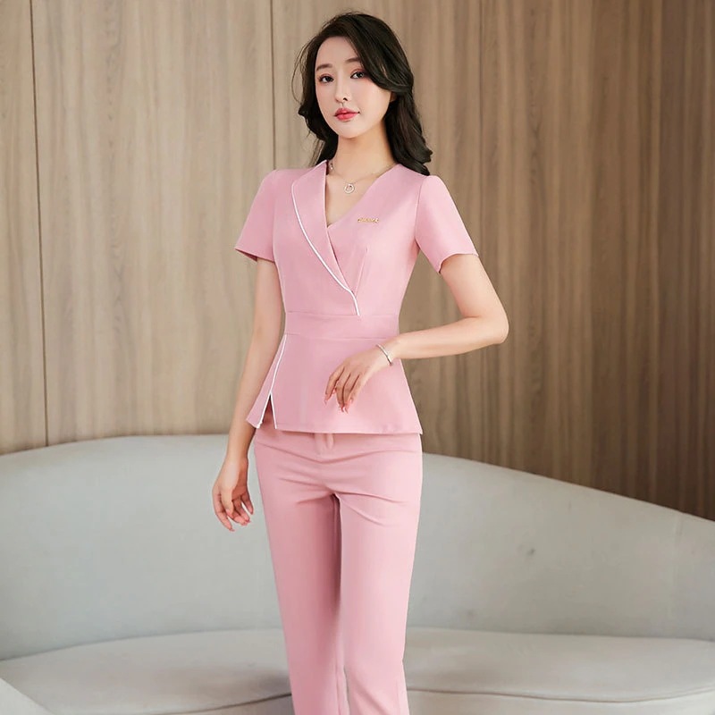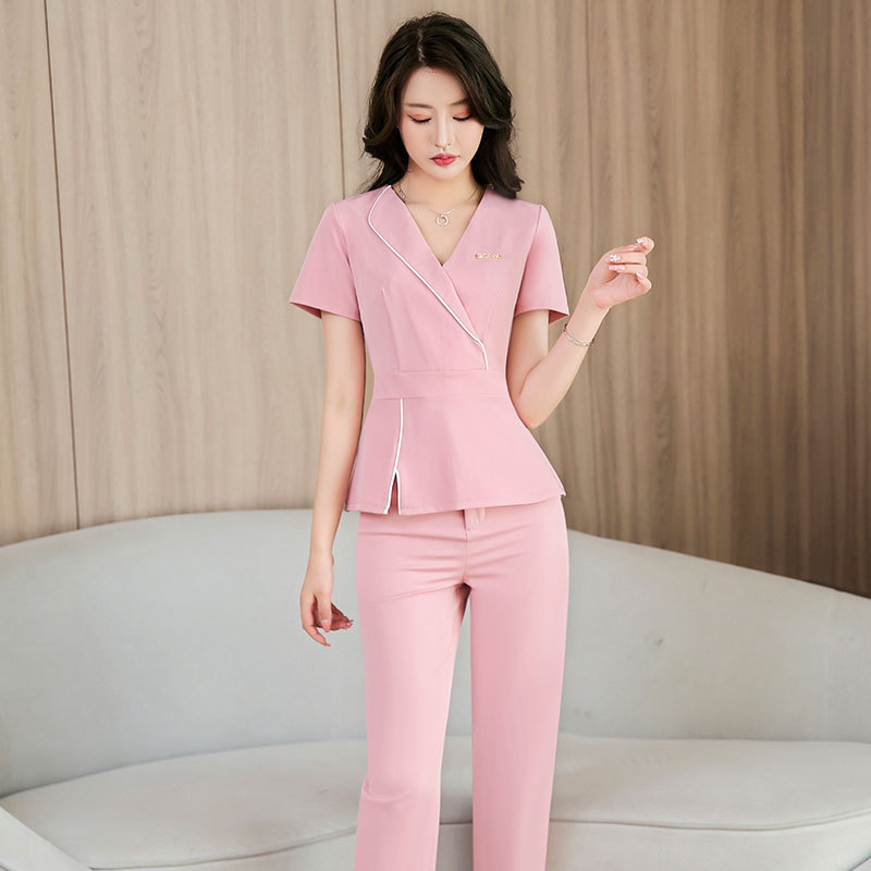 2024新作 セットアップ ユニフォーム エステ サロン 制服おしゃれ 半袖上下セット 美容院SPA正装販売工装 職業装 通勤 レディースセットアップ