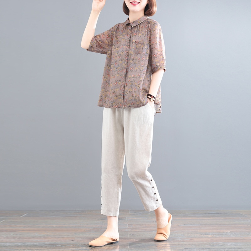 涼しく楽ちんセットアップ レディース 夏 韓国 半袖 2024新型ゆとり遮肉痩せ見えママ着花柄2点セット女 ルームウェア セットアップ スウェット上下セット スーツ