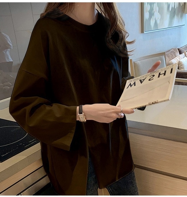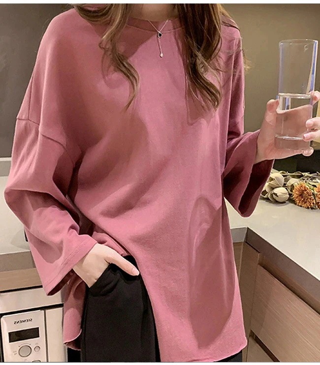Tシャツ レディース 長袖 カットソー ロング トップス 重ね着 丸首 カジュアル 無地 ベーシック シンプル 体型カバー Tシャツ カットソー