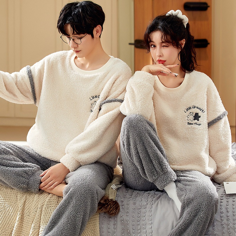 カップルパジャマ 冬 裹起毛 ルームウェア 韓国ファッション 部屋着 セットアップ 可愛い 快適 パジャマ レディース 冬 暖かい パジャマ メンズ