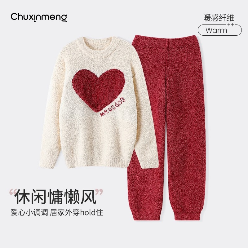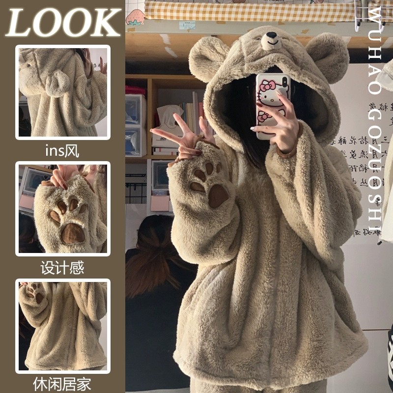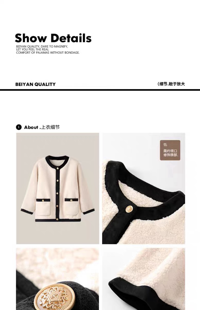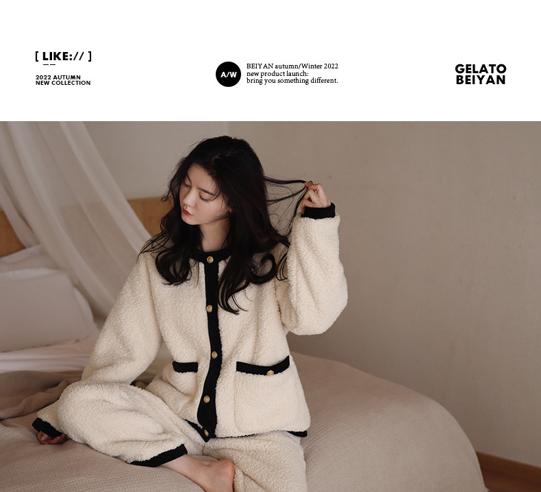 おしゃれ スイート 可愛い ウォーム 柔らかい コーラルフリース パジャマ カジュアル フランネル ホームウェア セットアップ