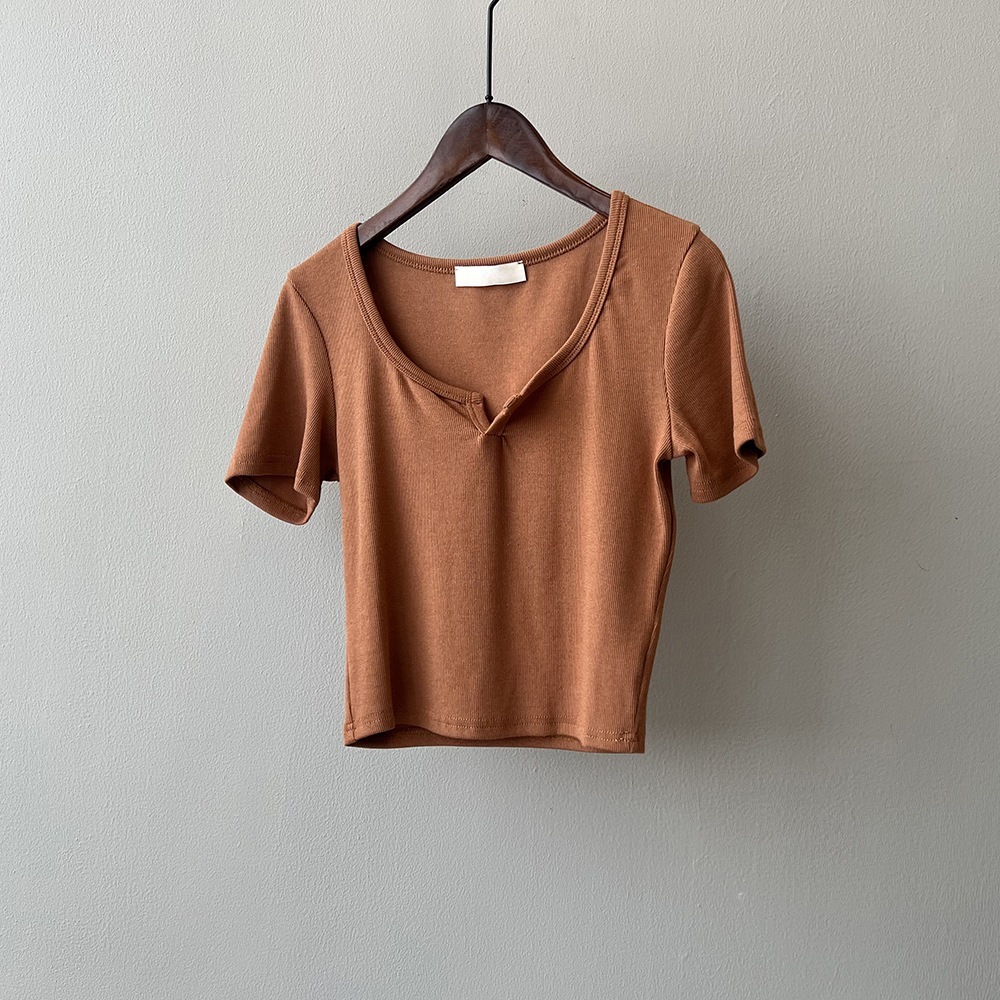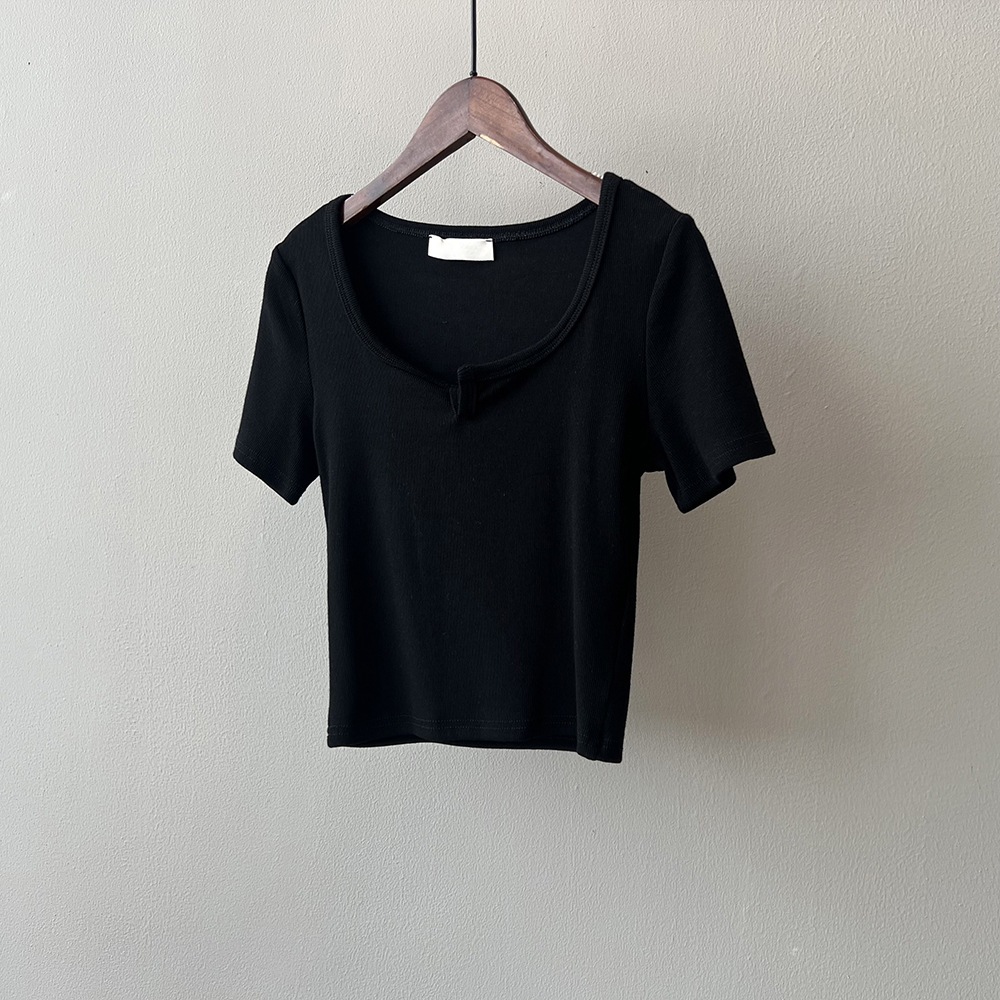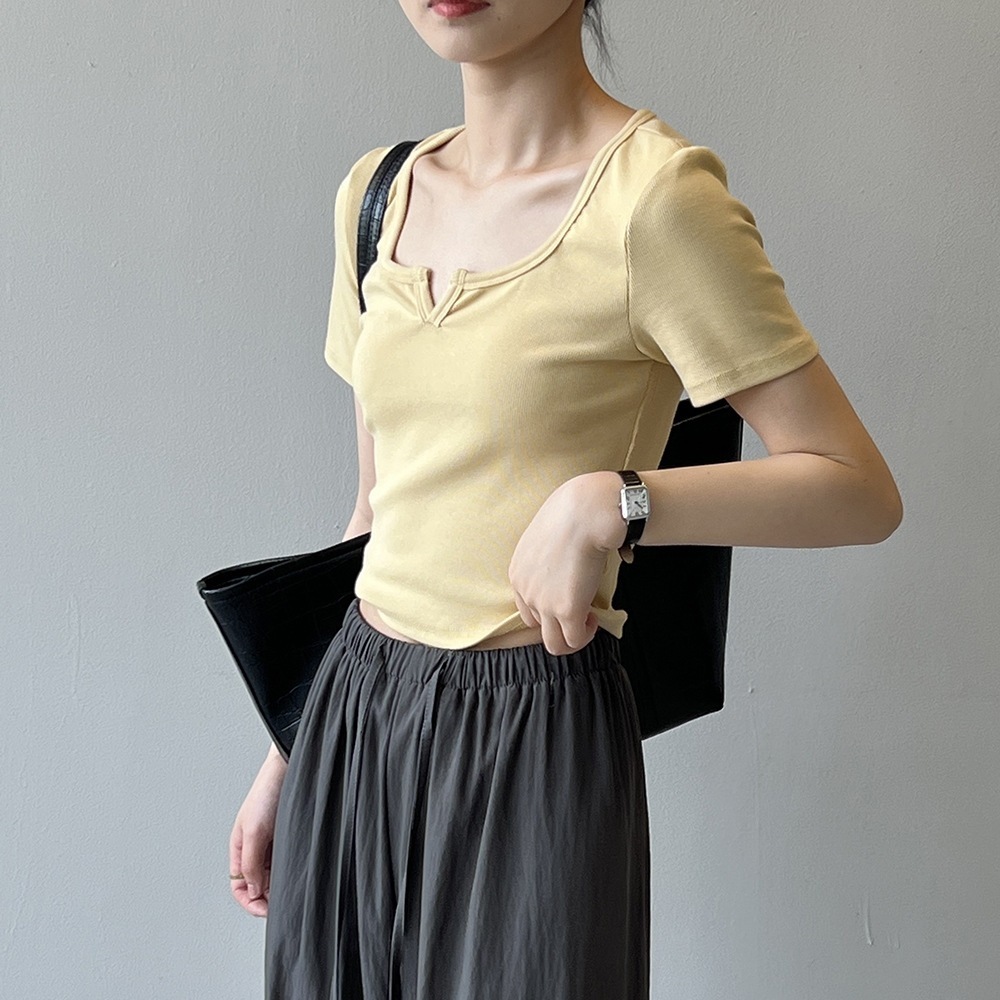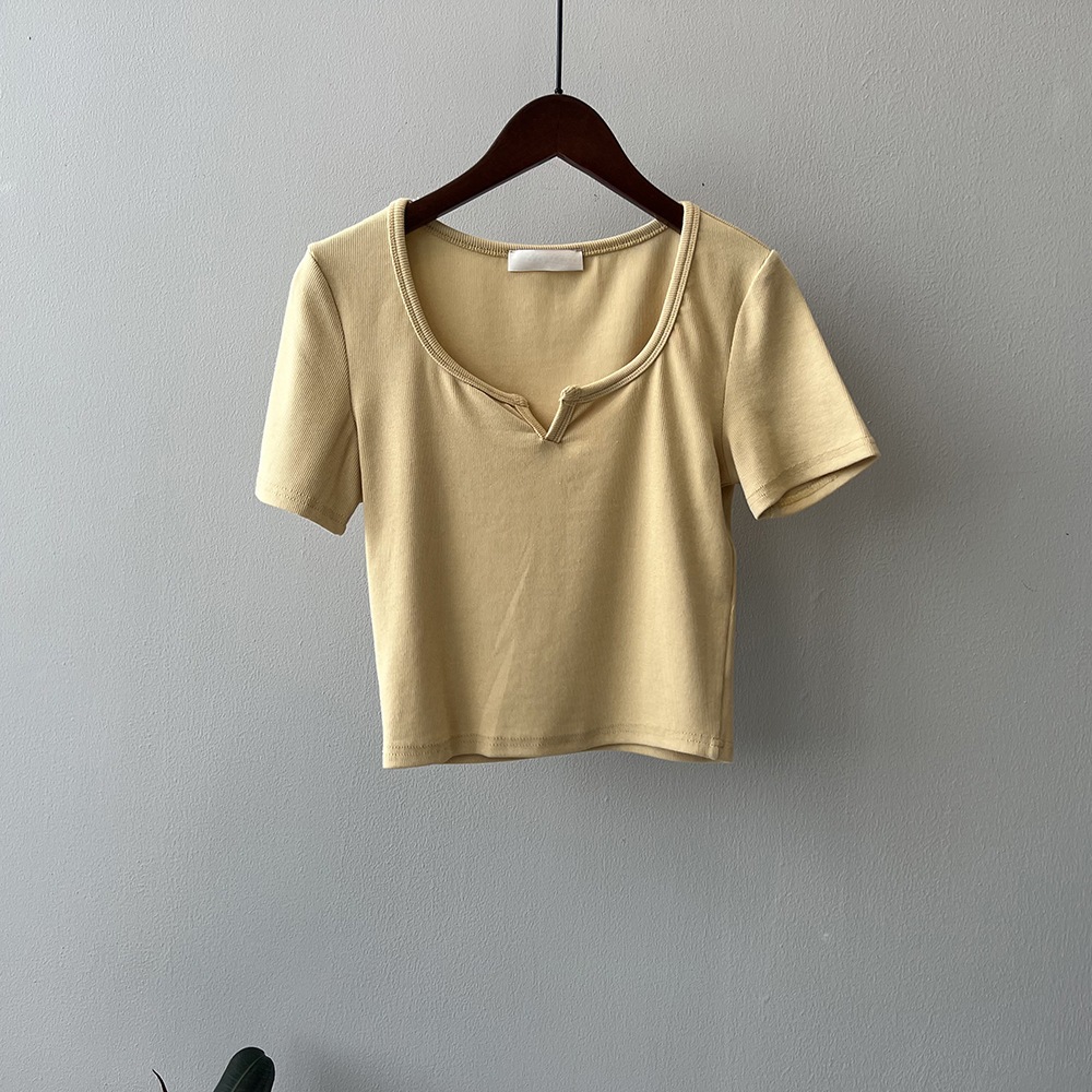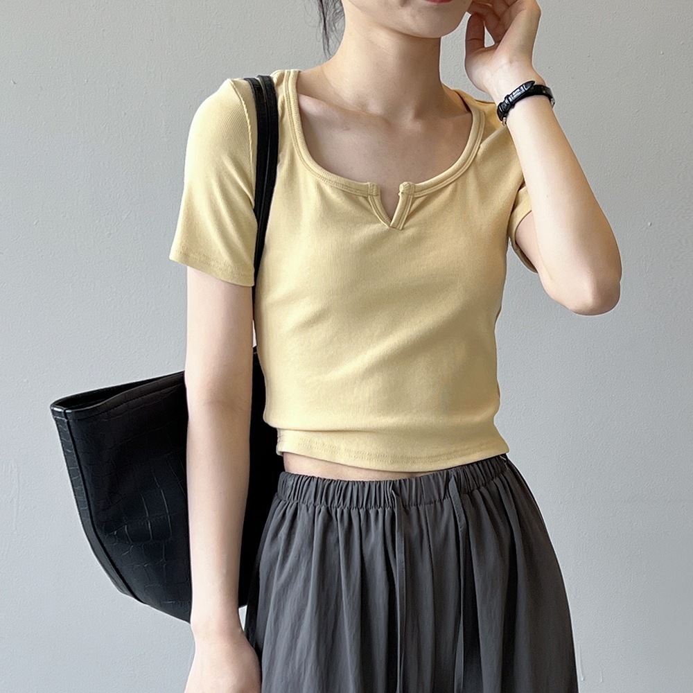 韓版半袖tシャツ2025夏新作ニッチデザイン感スリムショート上着無地着痩せ Tシャツ カットソー