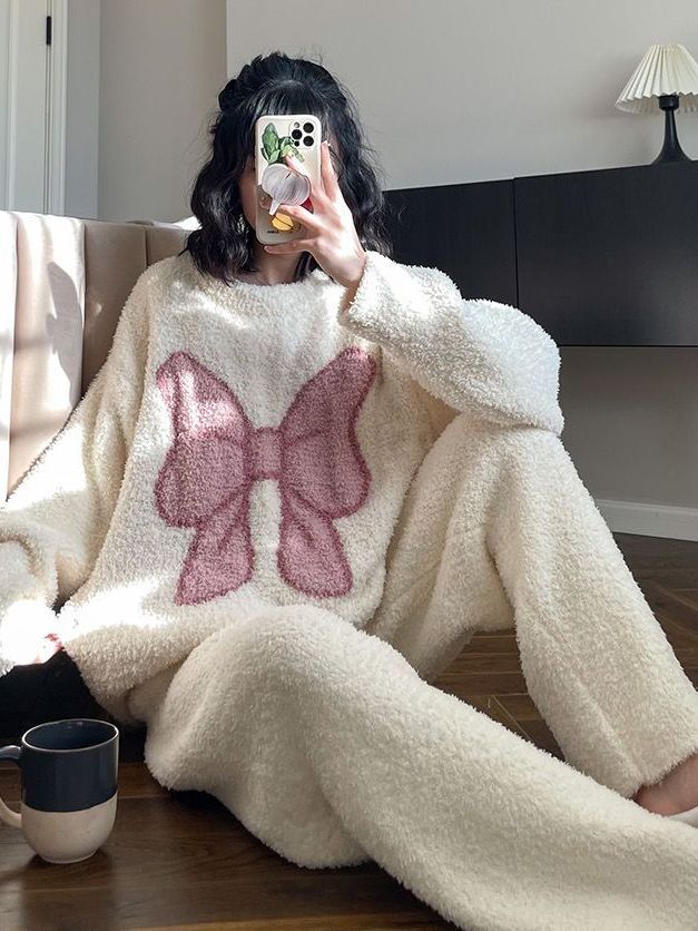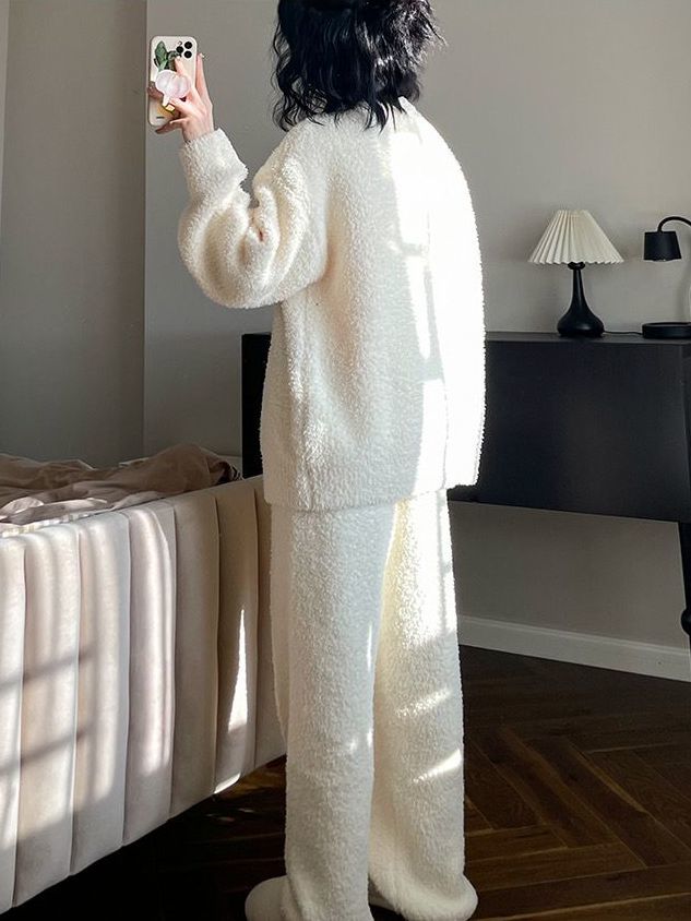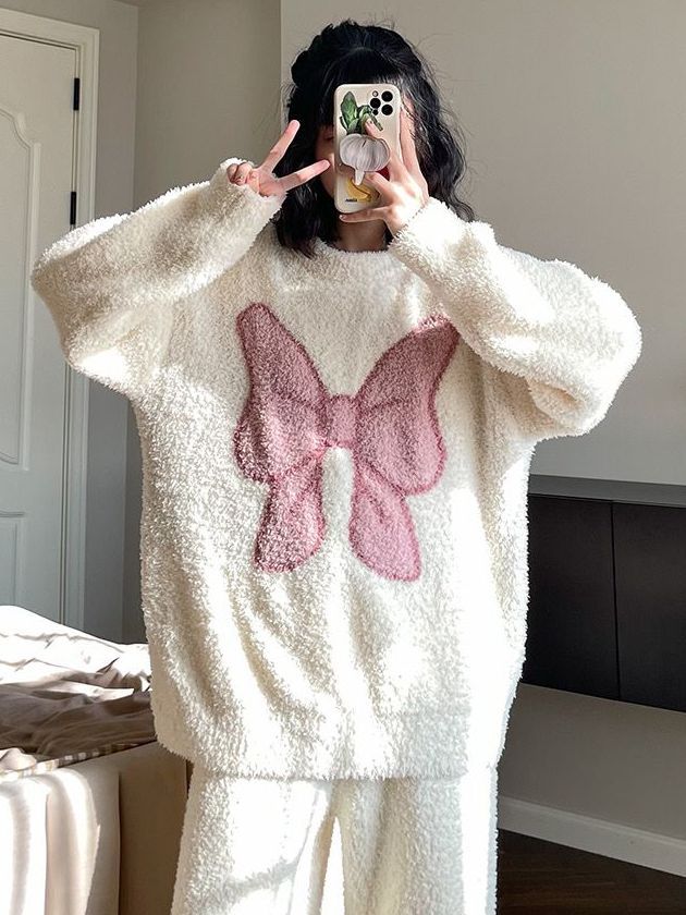 冬 フランネル パジャマ レディース 韓国ファッション 可愛い 部屋着 セットアップ 暖かい 裹起毛 ルームウェア ゆったり 快適 長袖パジャマ