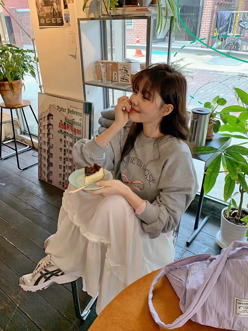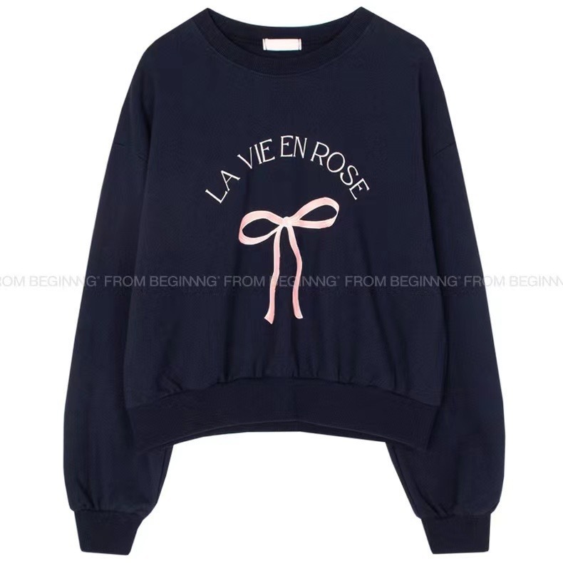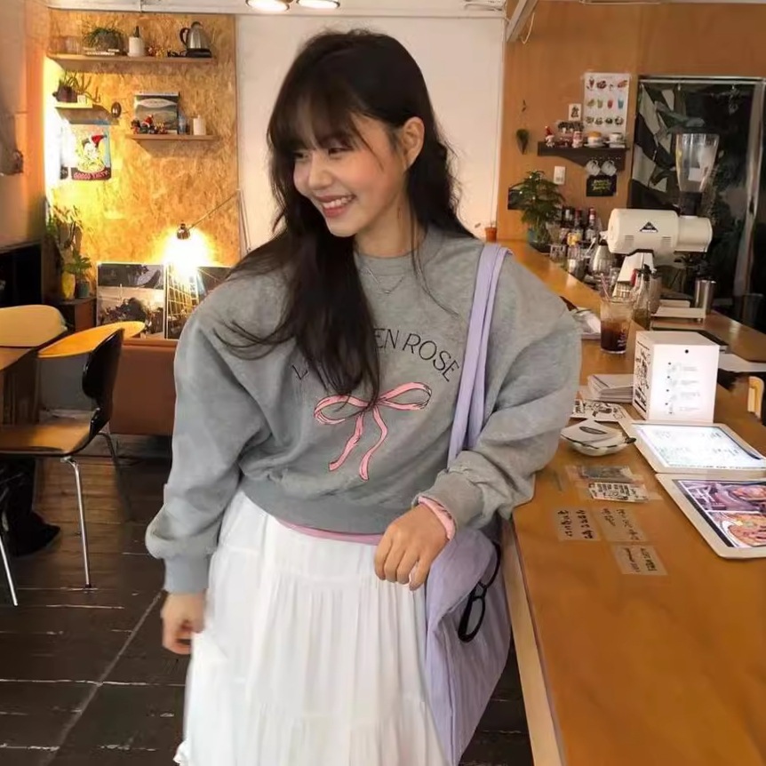 2024新作かわいいボウプリントプルオーバーテリーセーターレディース韓国多用途トップス バーカー パーカー