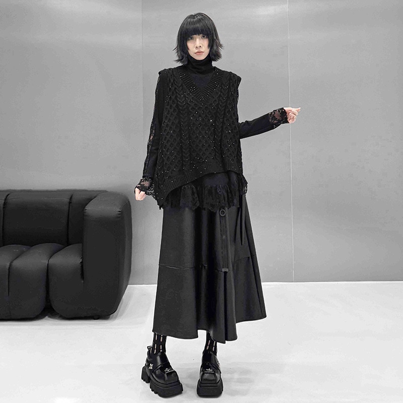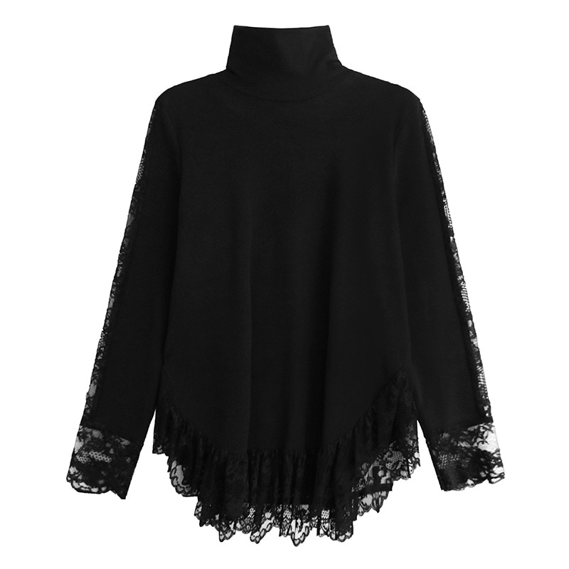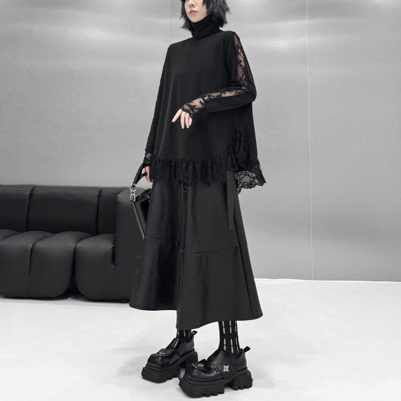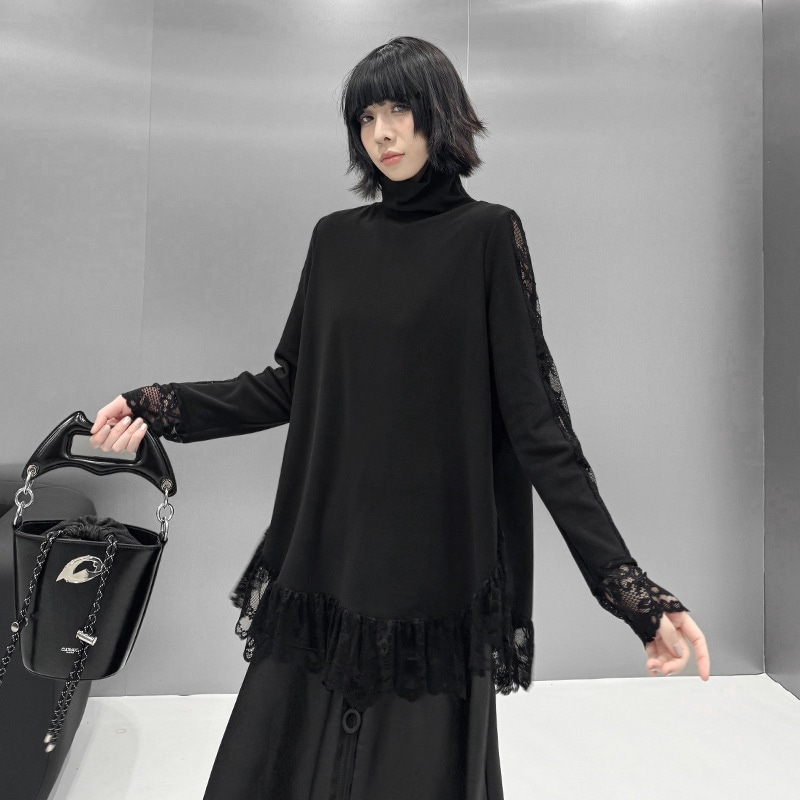 春新作 日系流行り レース切り替え ハイネック ロンT 高級デザイン感長袖トップス 韓国ファッション ゆったり 大きいサイズ 体型カバーTシャツ レディース スウェット 百掛け インナー