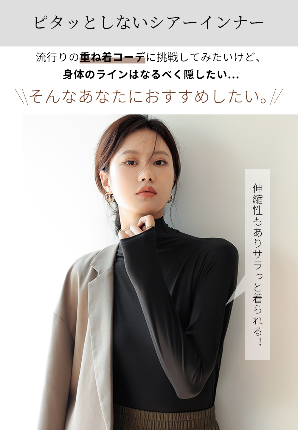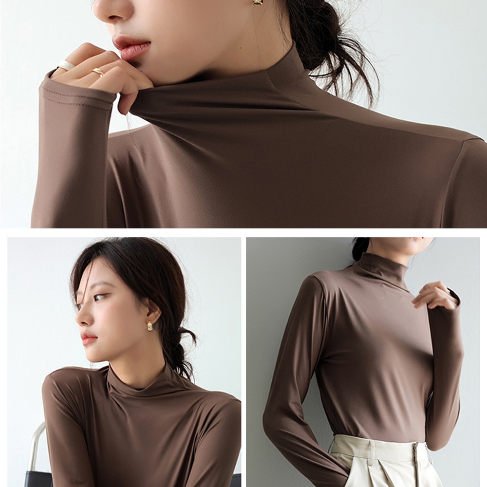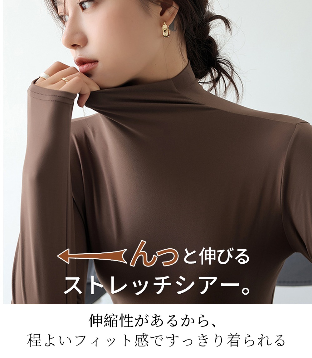 シアーインナー シアートップス インナー カットソー ハイネックトップス レディース 長袖 柔らかい 重ね着 サラッと シアー素材 伸縮性 無地 ストレッチ タートル きれいめ 体型カバー