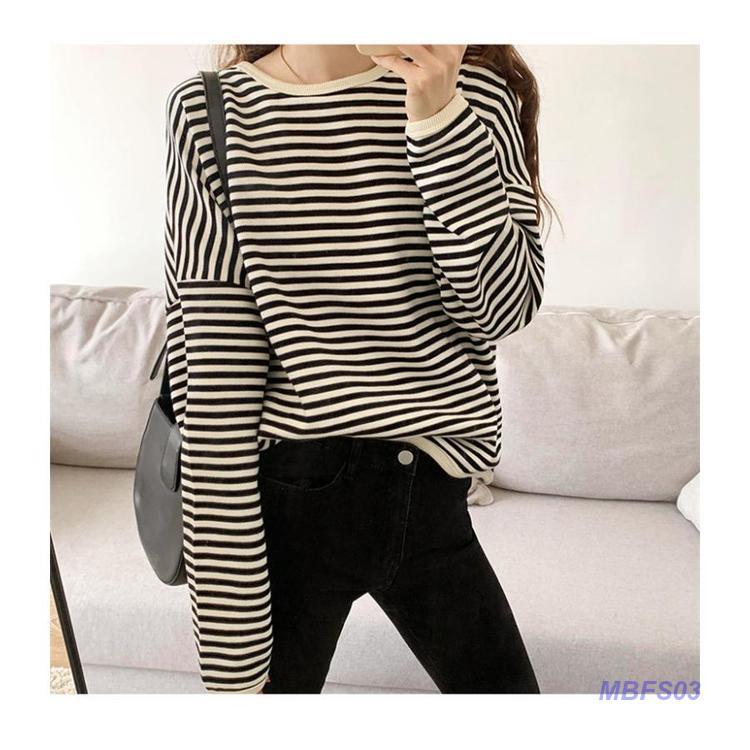 トレーナー レディース トップス スウェット 綿 ロンT クルーネック ストライプ アウター ゆったり 体型カバー 長袖 ボーダー 春秋 カジュアル