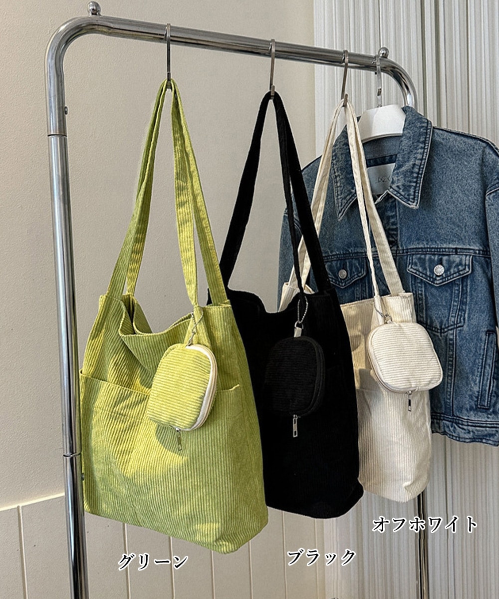ポーチ付きコーデュロイトートバッグ大容量 84HBJP-005 トートバッグ