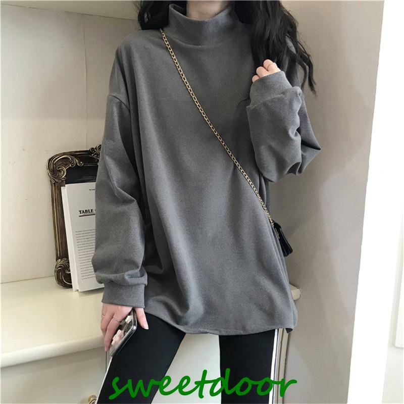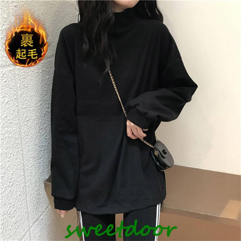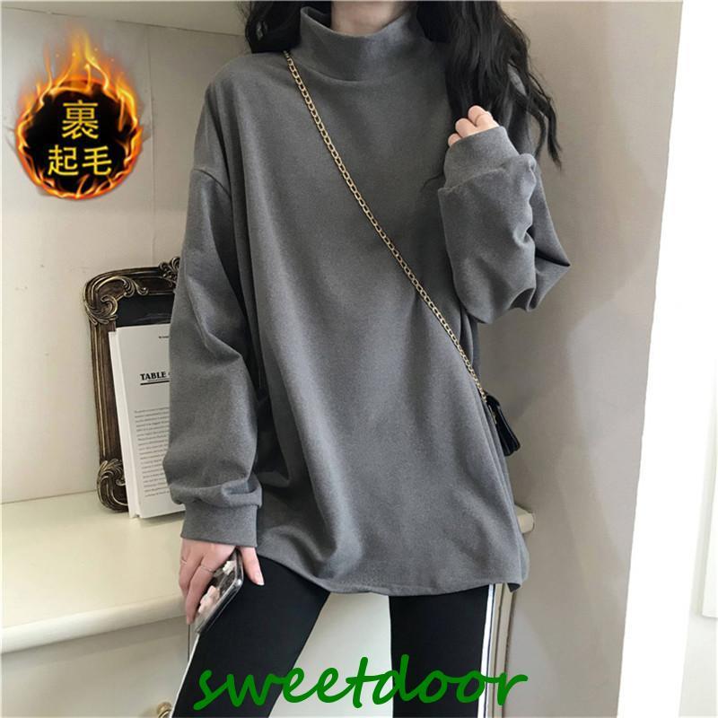 Tシャツ レディース カットソー 長袖 ロングT インナー 裏起毛 プルオーバー レイヤード ハイネック ゆったり 着痩せ 厚手 通勤 きれいめ 春秋 新作